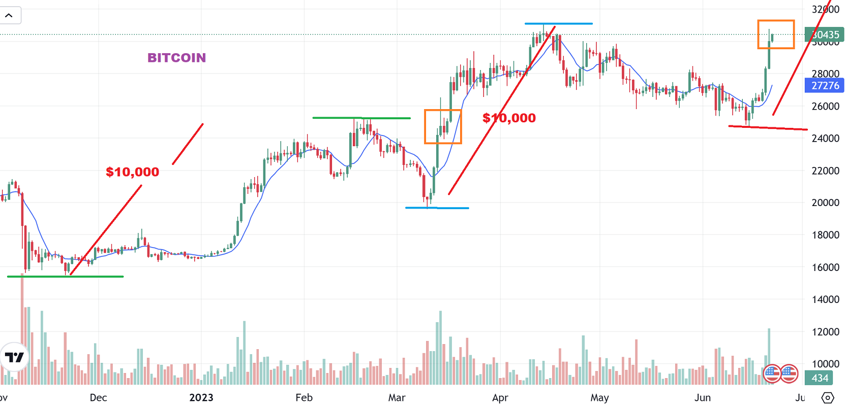 BITCOIN IF THE LOWS ARE IN PLACE – We saw roughly a 10,000+ run out of the last 2 lows, so a repeat would cause us a run to roughly 35,000 if we get a symmetrical run.