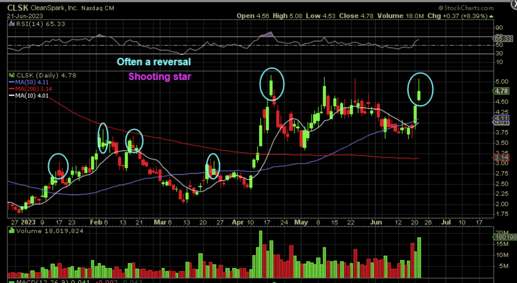 CLSK – As you can see, these candles are often where a pause, top, or sideways chop can begin.