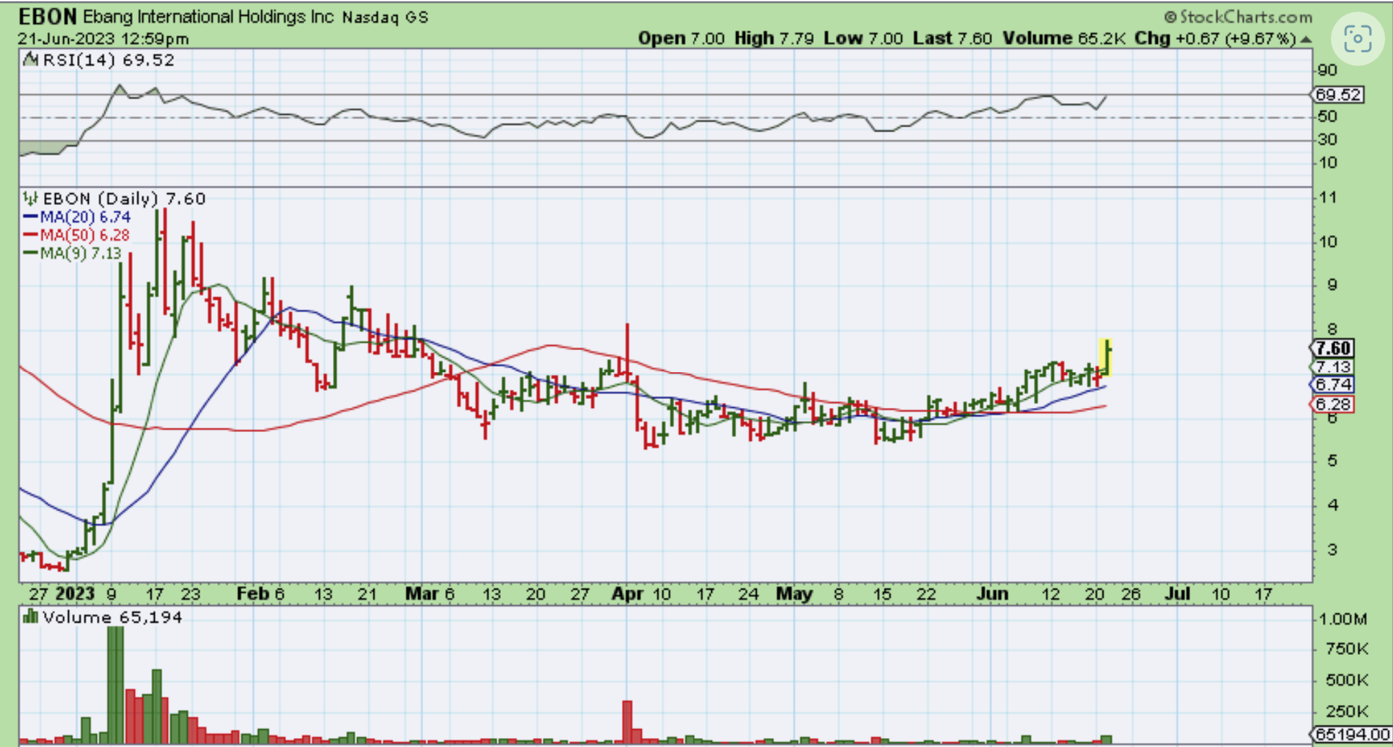 Yesterday I also pointed out that some of the laggards like EBON, CAN, etc were starting to move higher too. EBON has actually been trending higher since May as Bitcoin sold off, but it did go red on Tuesday, when Bitcoin was up BIG.