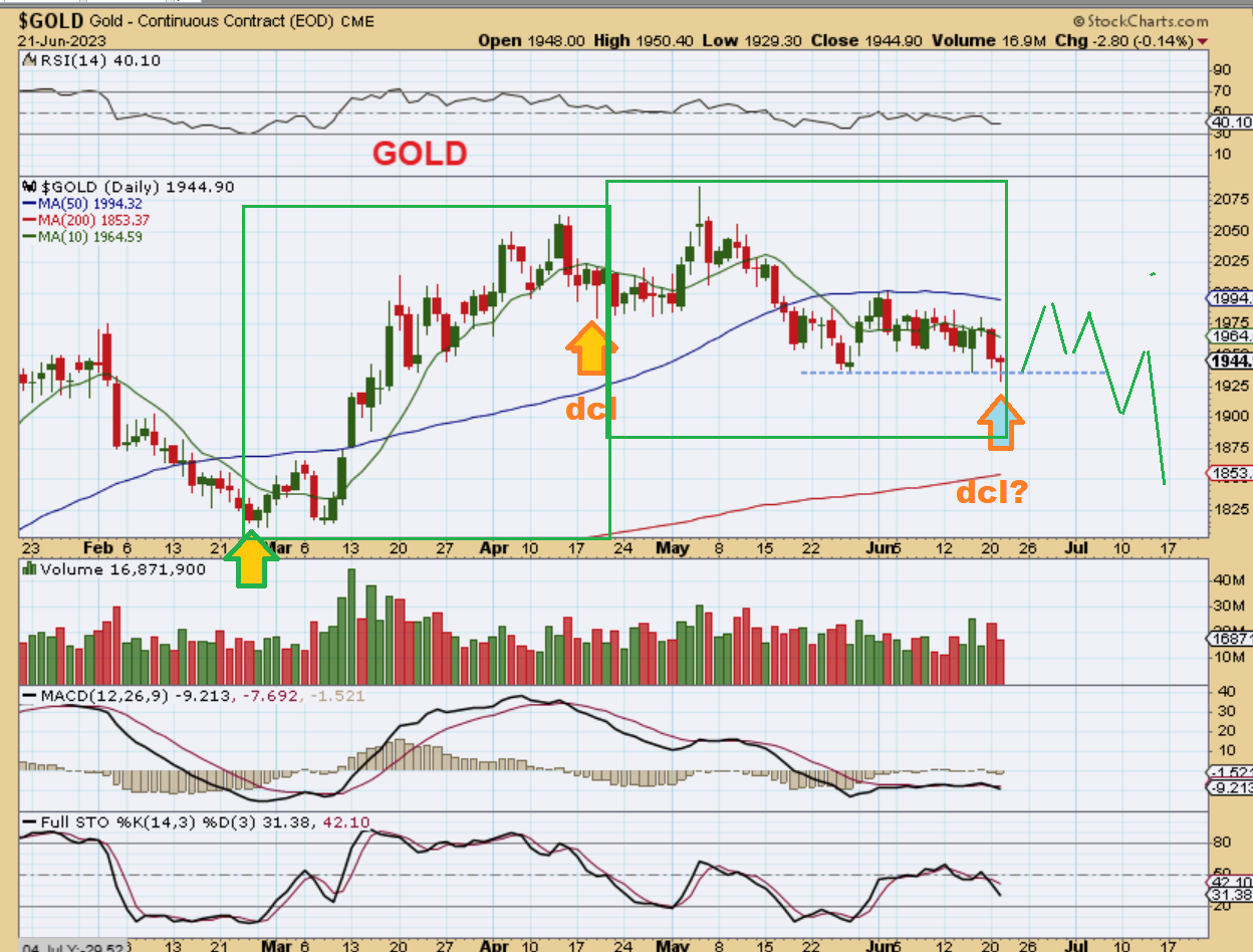 GOLD did not really Pop as the USD dropped, but it did drop to a new 3 month low and then it recovered. Could this be a dcl? Yes, it could, but we also may have seen an early dcl in late May. But before we get too excited, let’s take a look…