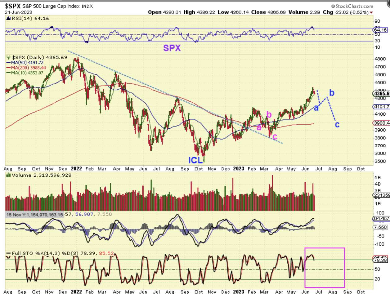 In the bigger picture, we also may be coming due for an ICL. For that to take place, we should have an a-b-c drop from here. That would be a dcl at ‘a‘, followed by a rally to ‘b‘, and then a dcl ( or ICL) at ‘c‘, and THAT drop to ‘c’ would be a STRONG BUY in August/ September.