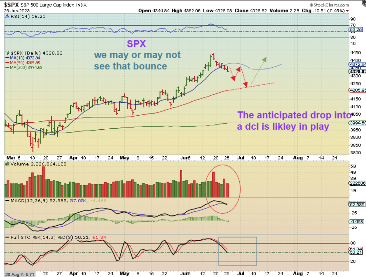 So The SPX should also be dropping into its dcl. It can bounce (that would be short-able), but I’m thinking that we’ll see the 50sma before a real dcl is in place.