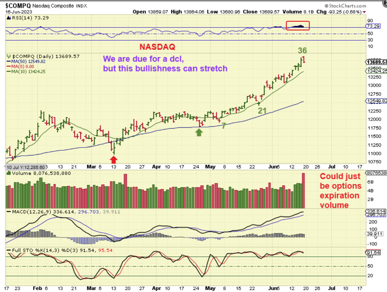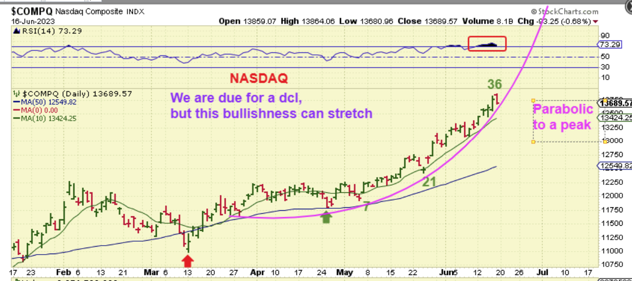 If the NASDAQ is doing a parabolic run, it can still stretch out further and extend. It is hard to call a top on a solid bullish move.