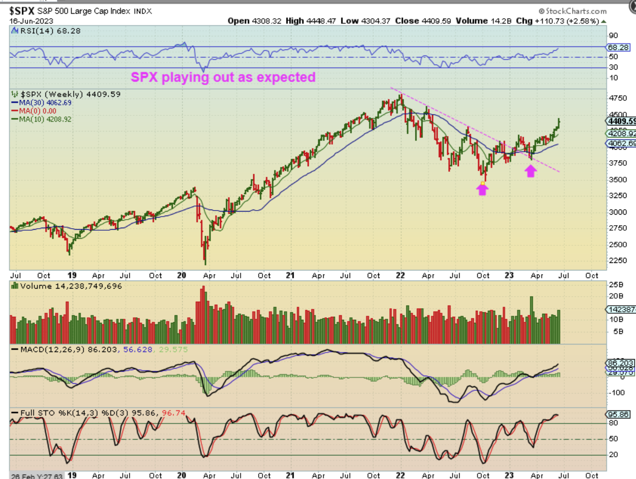 The SPX was also chopping sideways for weeks, but it is now pushing higher out of that consolidation too. We may dip into a dcl and then rally higher.