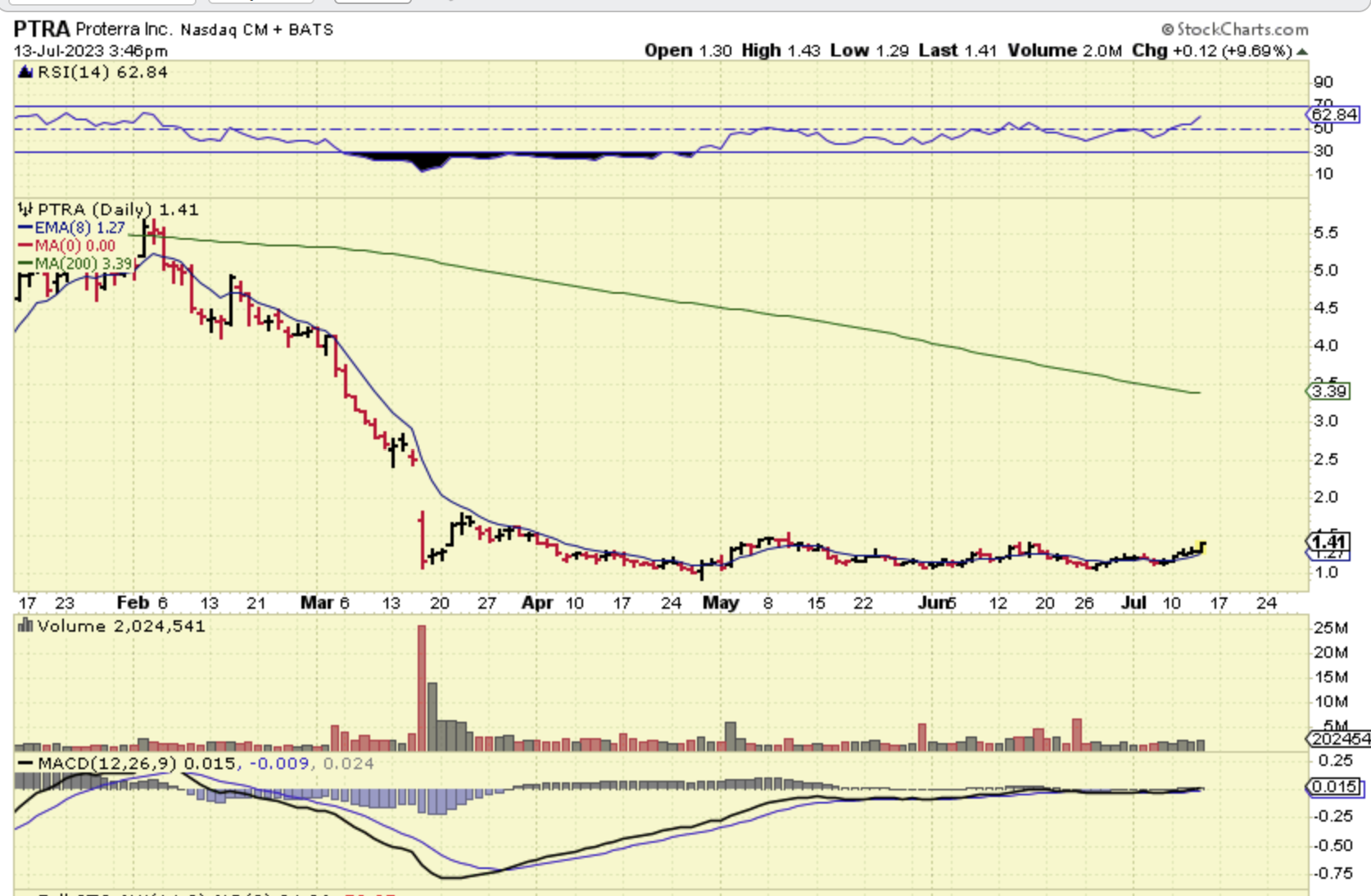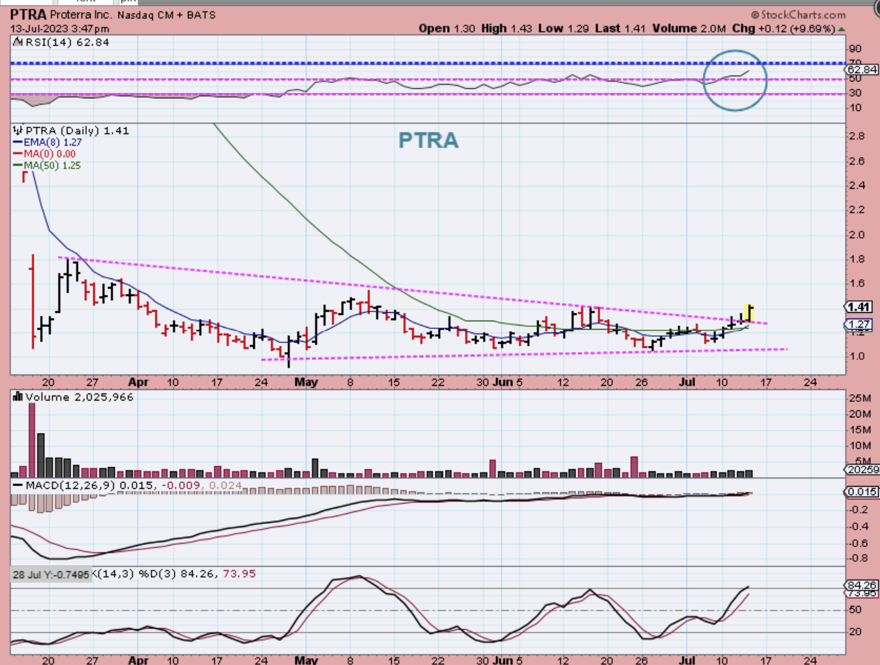 PTRA -The close up would look like this and the RSI is bullish.