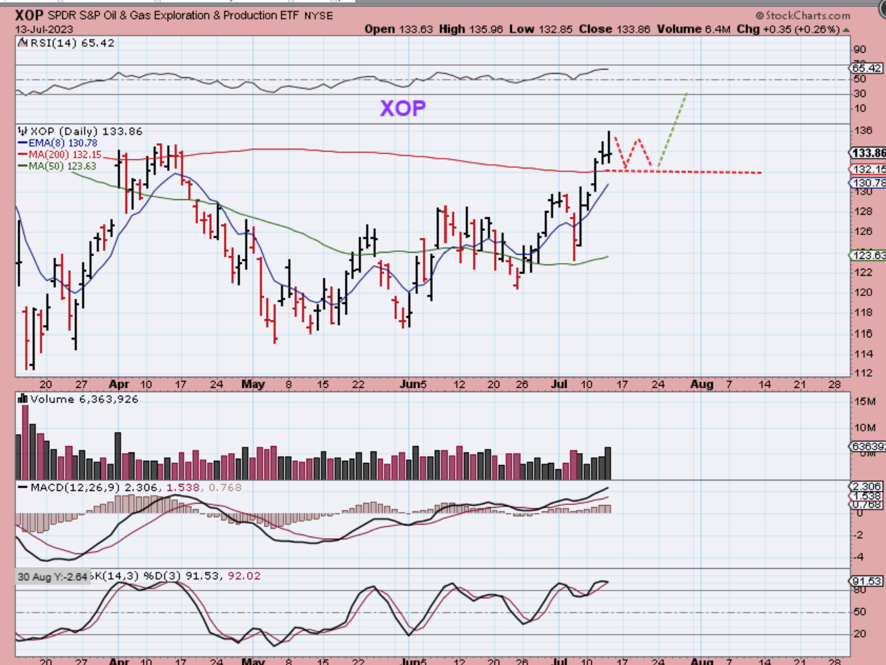 THE XOP broke out 3 days ago and is stalling slightly.  That happens all the time, so we expected that as a possibility. Oil stocks did well this week and should continue higher.