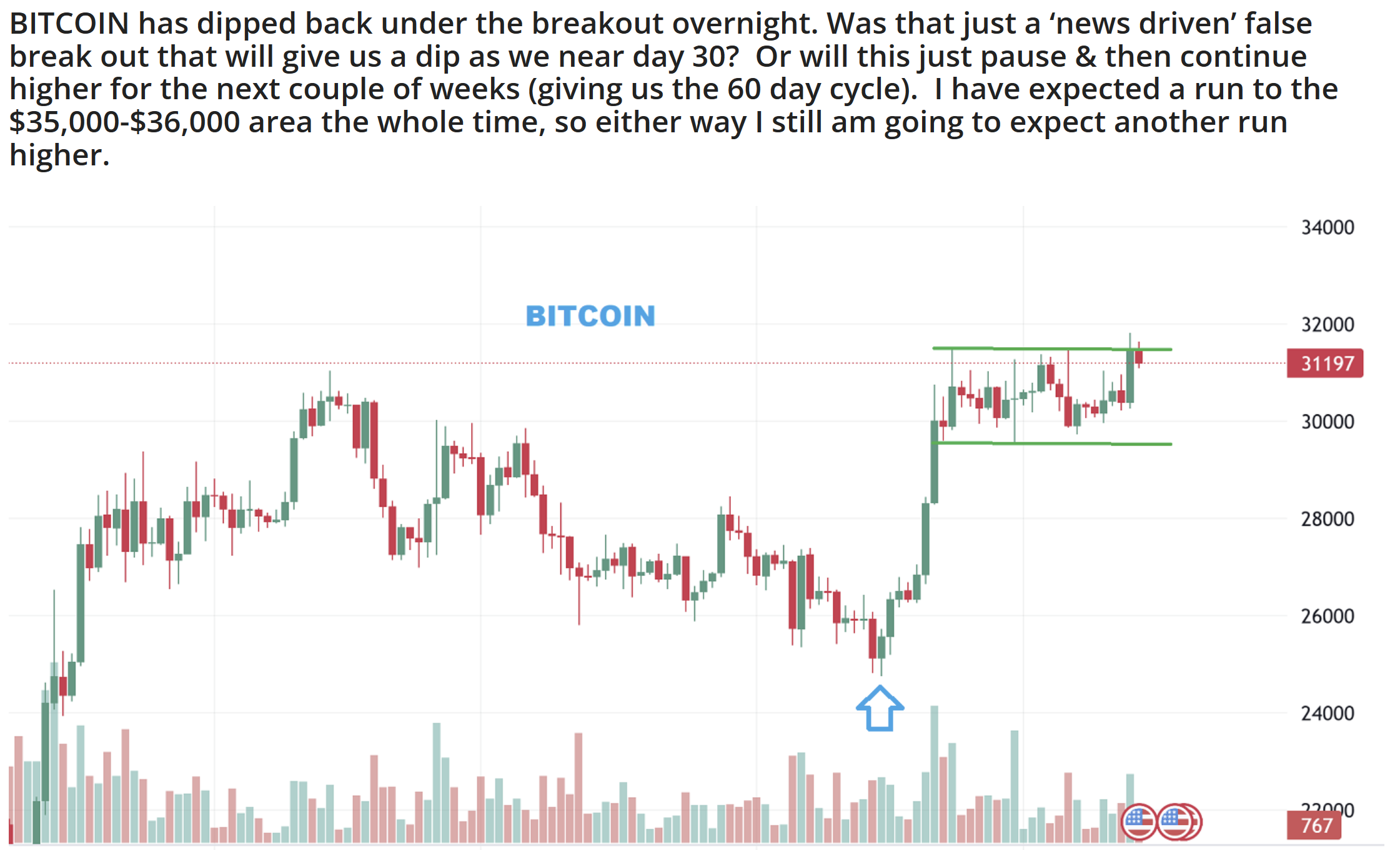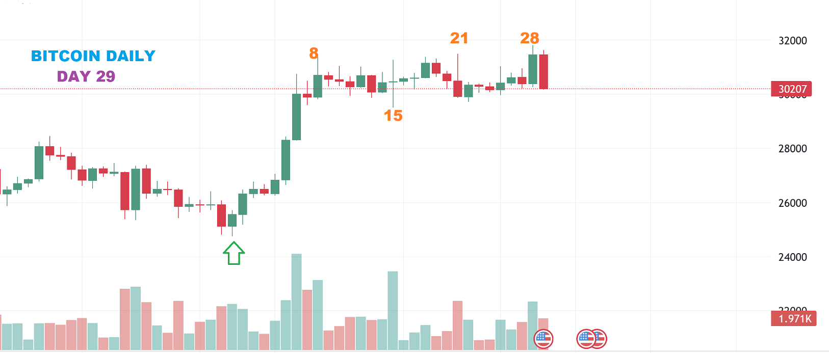 Suddenly we did get that dip in BITCOIN as hit day 29.
