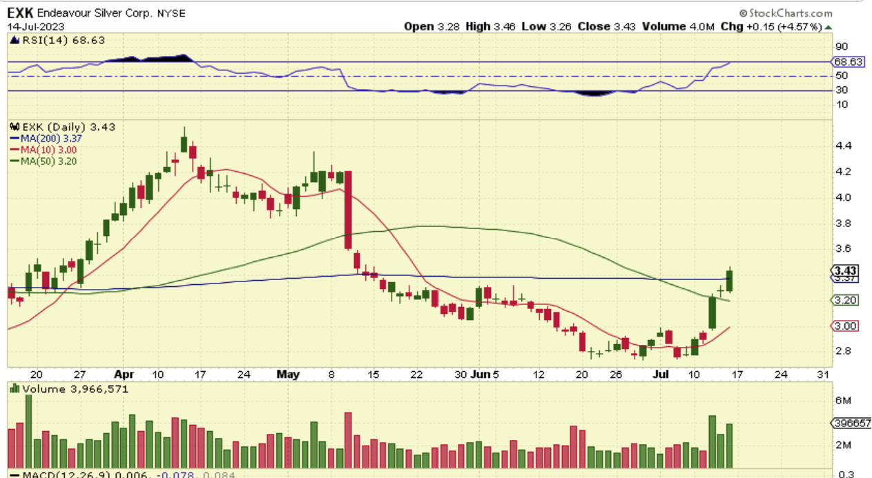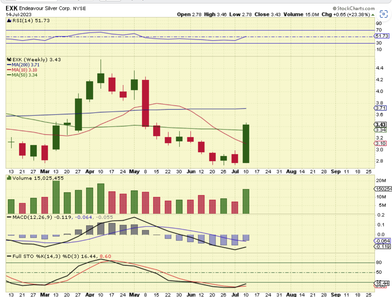 That means that EXK & many of the Silver stocks are up HUGE for the week, yet they are still oversold. EXK was up 23.38% this week alone.