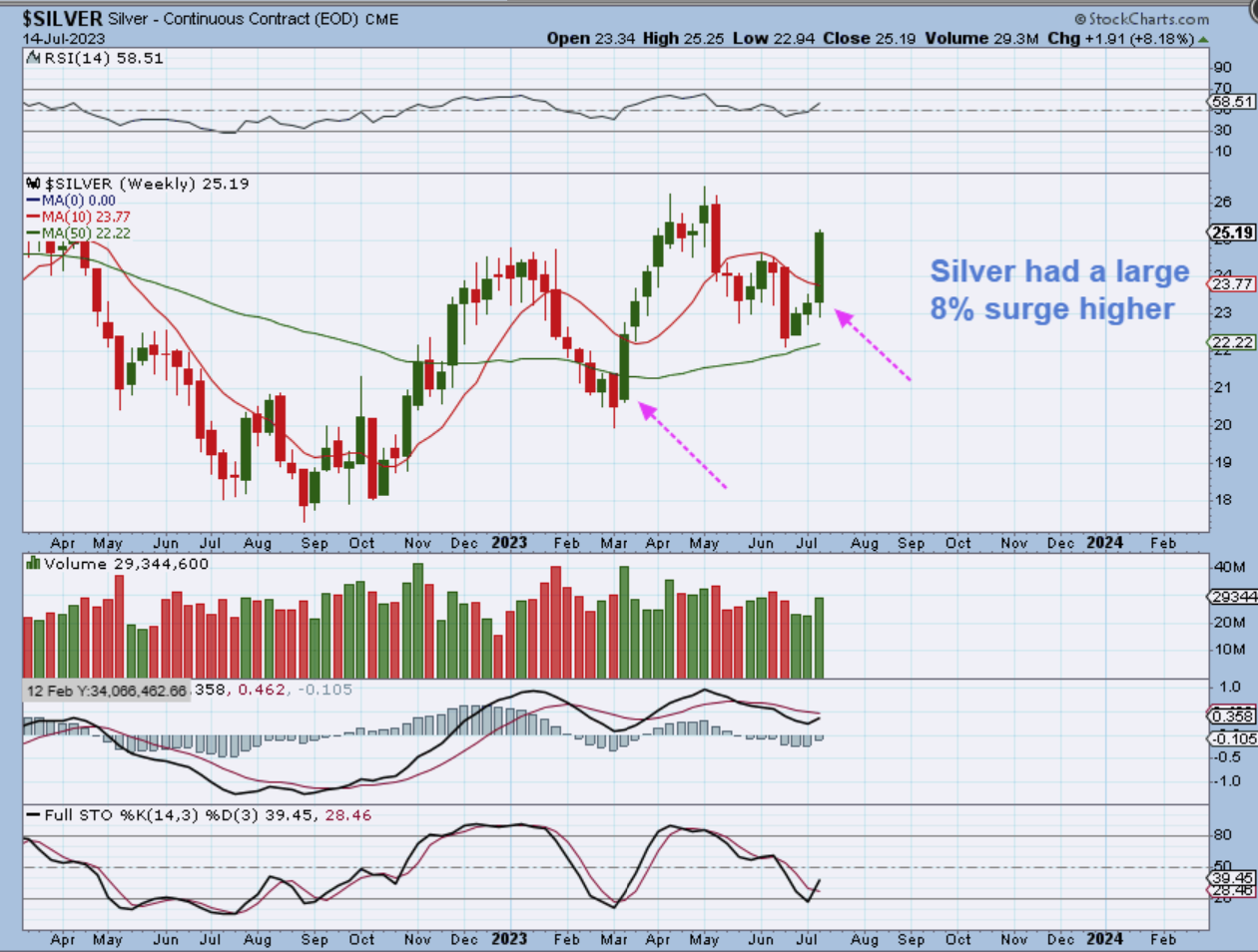 Not only is the bullishness still with us in this weekend report, the chart of SILVER and the Silver Miners was very impressive, with 20% gains! They are still oversold and near the lows, so even if we see a pause, there is nothing to worry about, there should be a plenty of gains ahead.