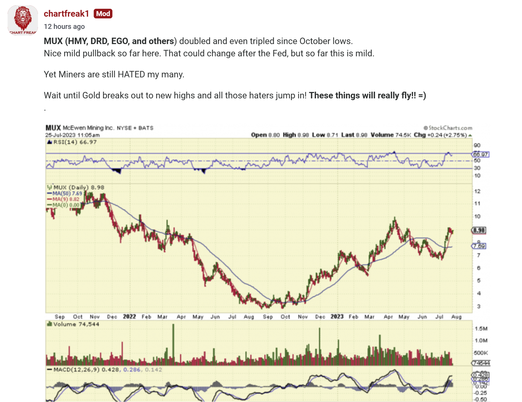 I wrote this in the comments section yesterday: Many Miners tripled, and they are still hated. This was MUX $3 to $10.