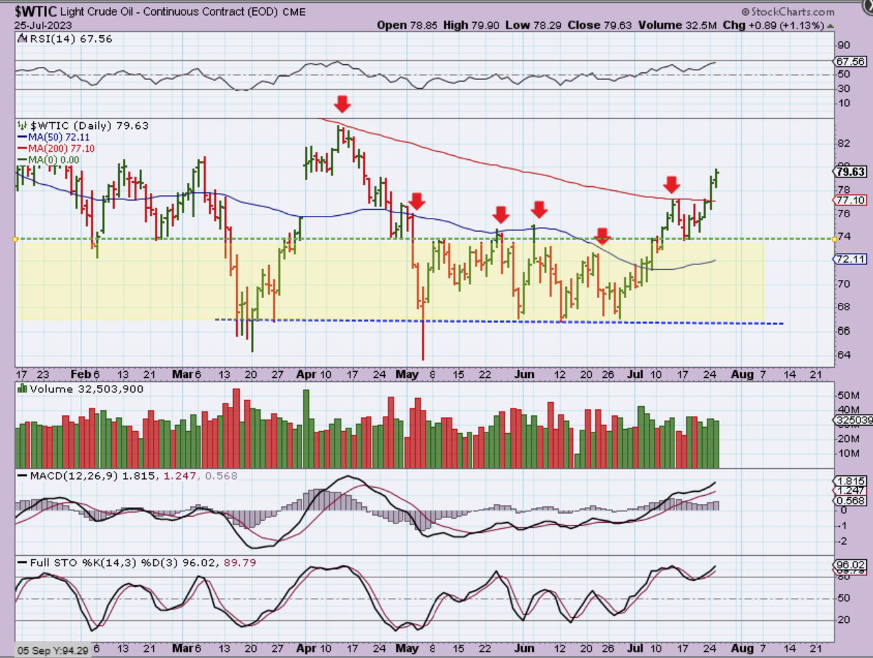 WTIC – As we’ve been discussing, Oil has been bullish and it did find bullish follow-through above that 200sma breakout. Oil stocks are also continuing to do well.