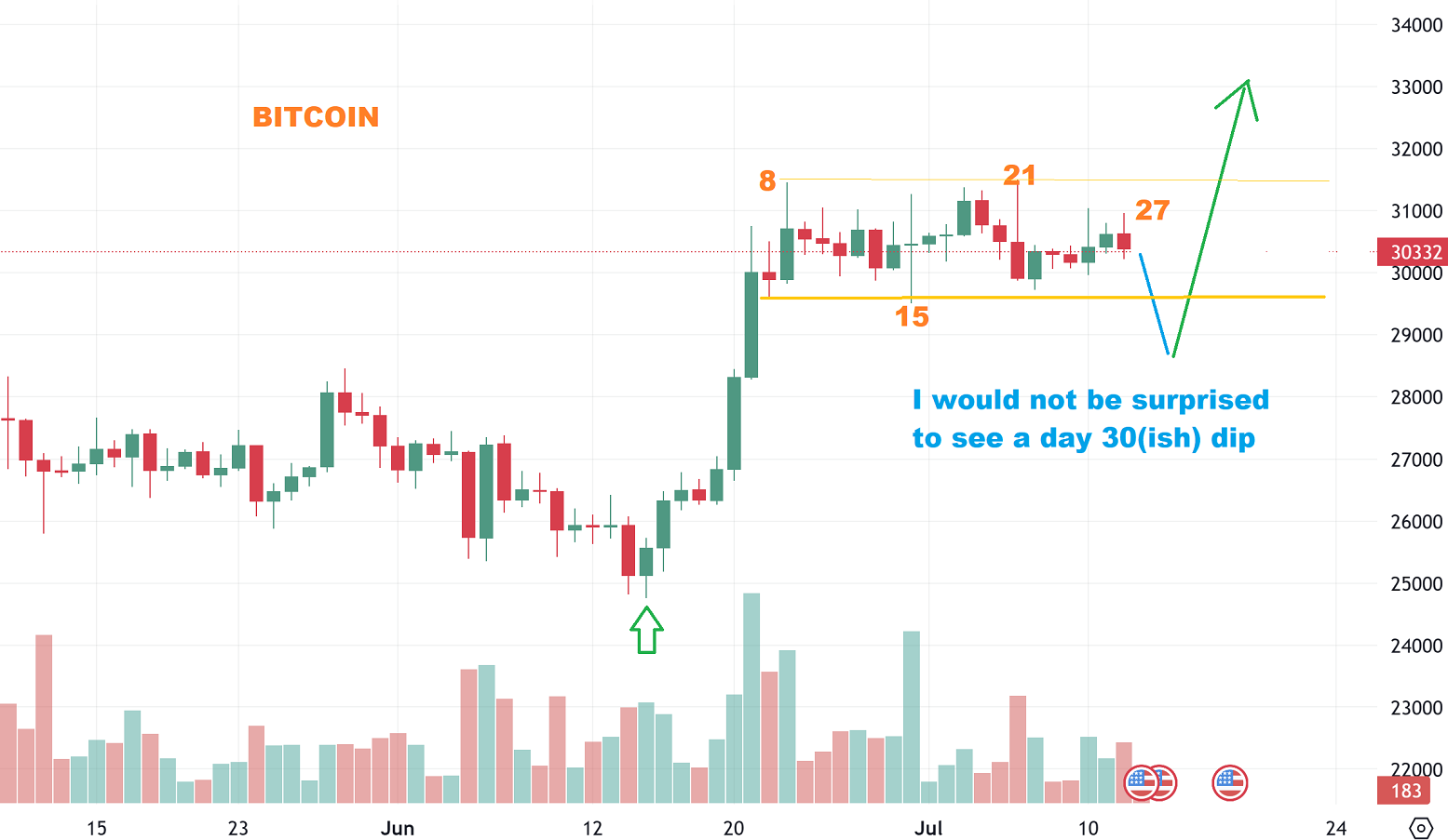 BITCOIN : This dip does not have to happen, but I count Bitcoin in days of 30 & 60, so I wouldnt be surprised if Bitcoin is ready to dip lower over the next week or so. That would possibly take the shine off of it temporarily.