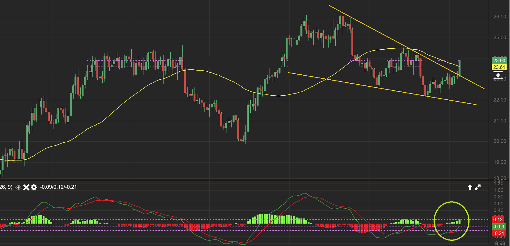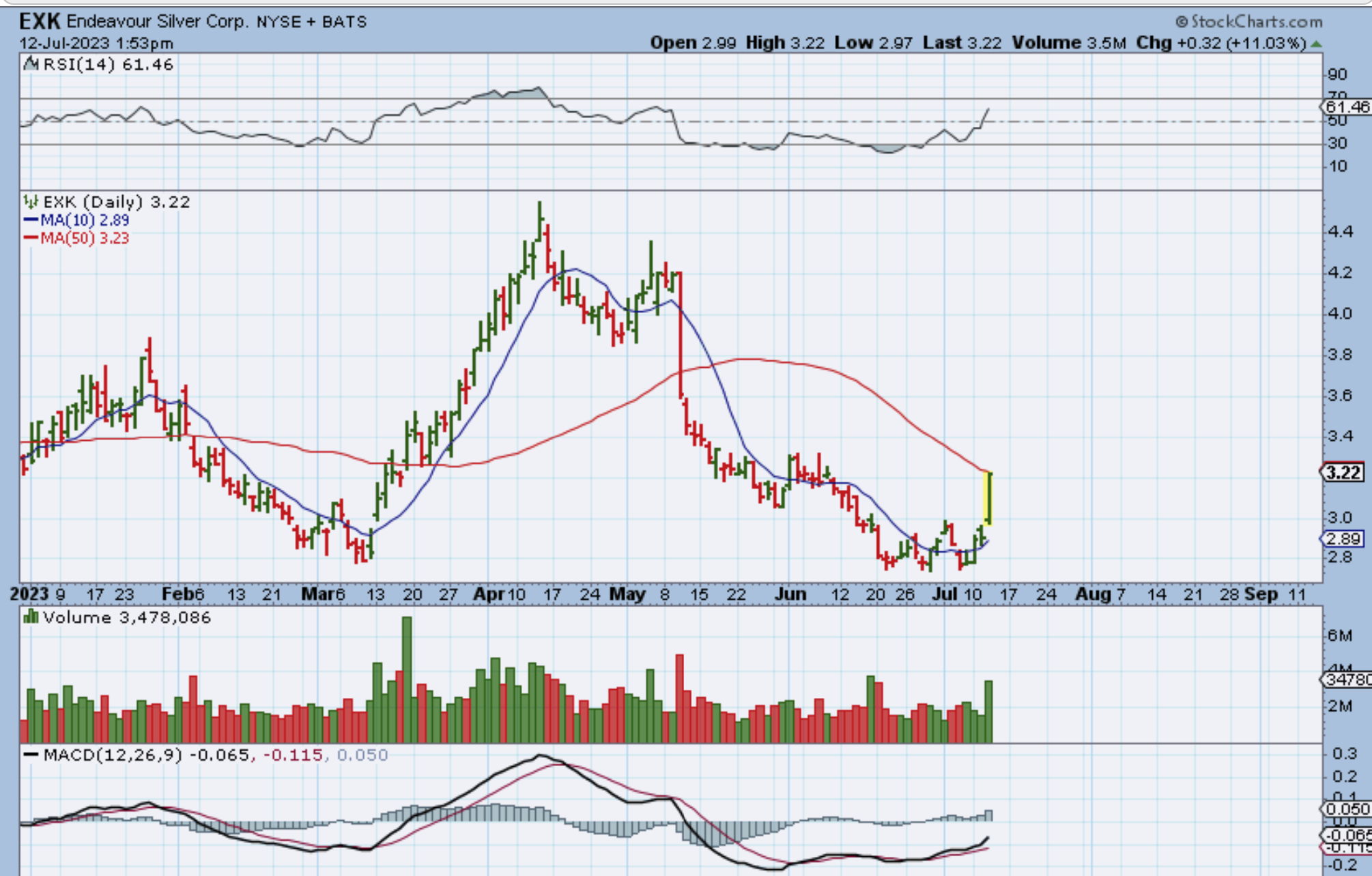 And on Wednesday EXK shot up all day long and was up 11% by 1:53 p.m. et. This may pause, crawl at the 50sma, or break through. Any of those would be considered a good place to add.