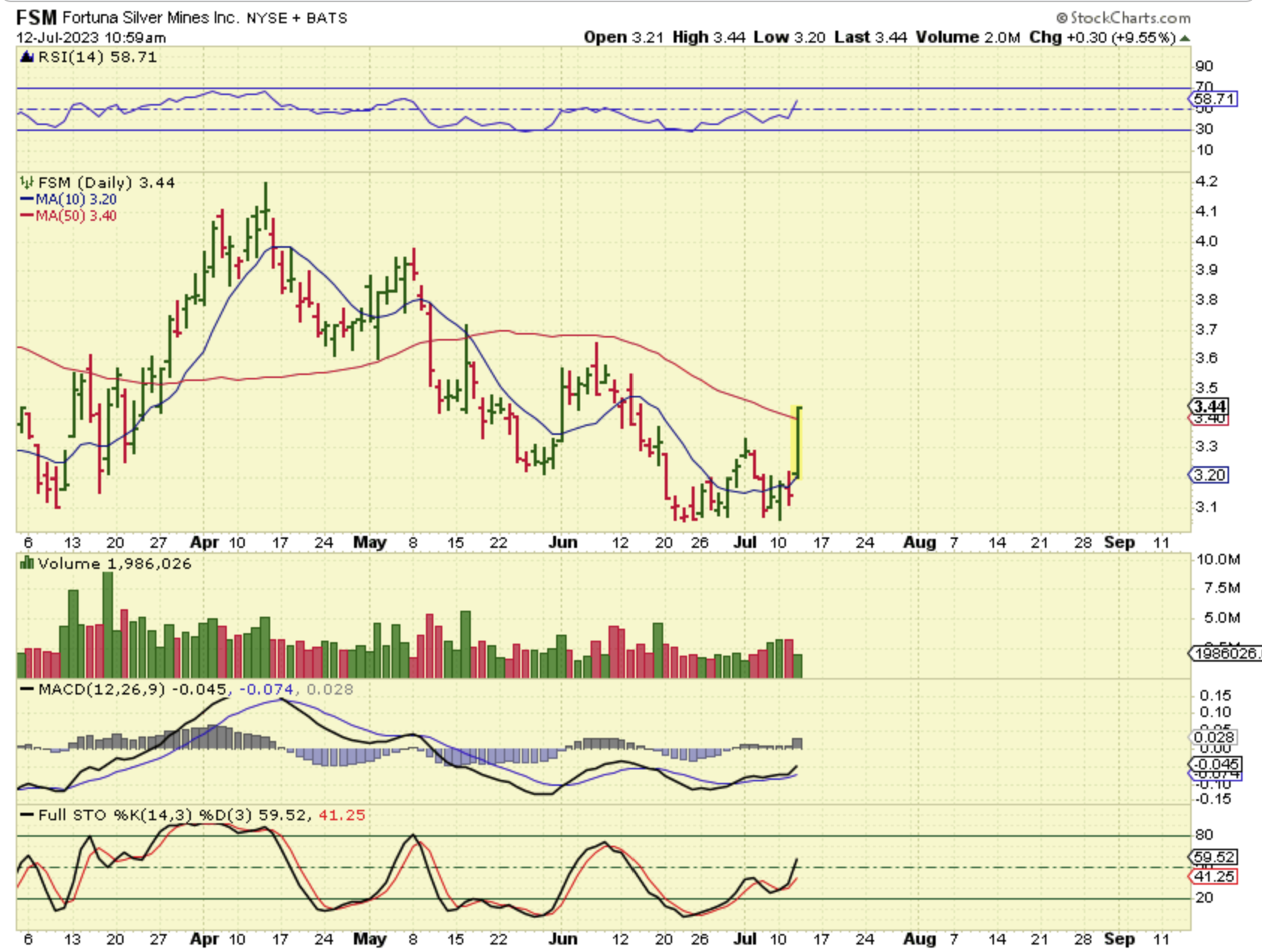 FSM also took out the 50sma, so we saw strong moves in the silver stocks yesterday.
