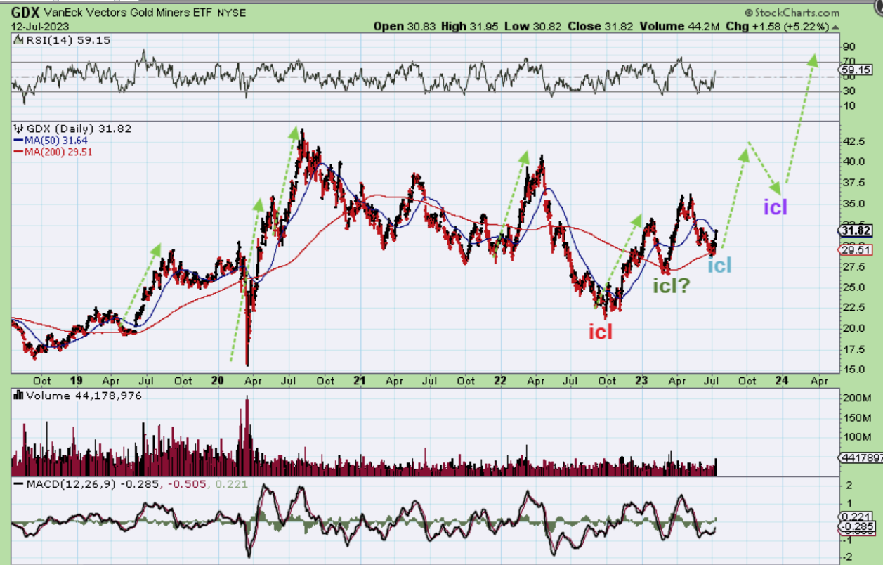 I usually have the Bigger Picture in the weekend reports, but here I just wanted to show how The GDX ETF could rally out of the ICL to former highs, pause, and then break out to new all-time highs.