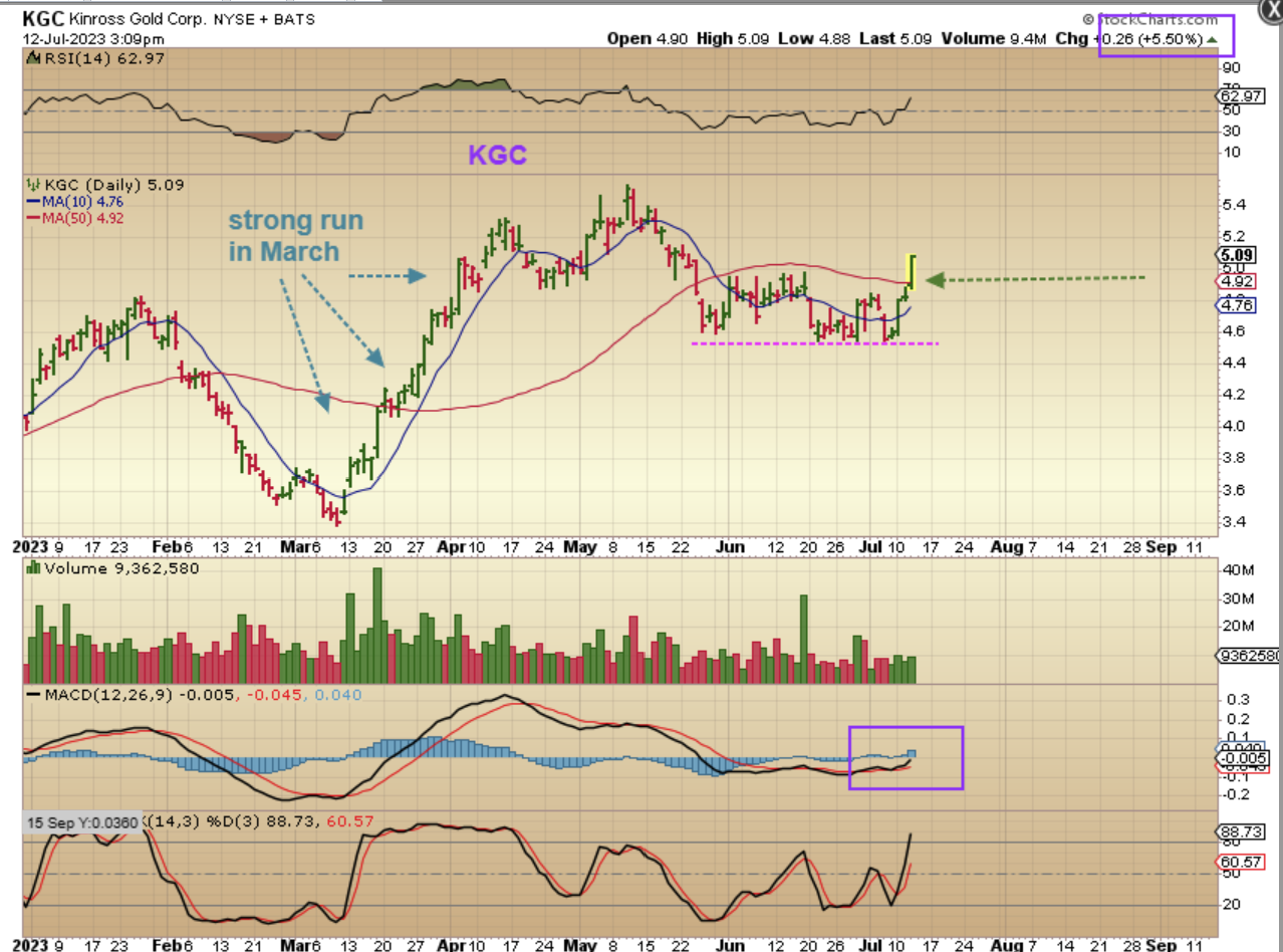 KGC had a really strong run out of the March lows, and then when it came time to pull back, it dropped and churned sideways rather than to drop and continue dropping. Notice that in just 3 good days, KGC is very close to being back at the highs already. That is a healthy looking chart to me.