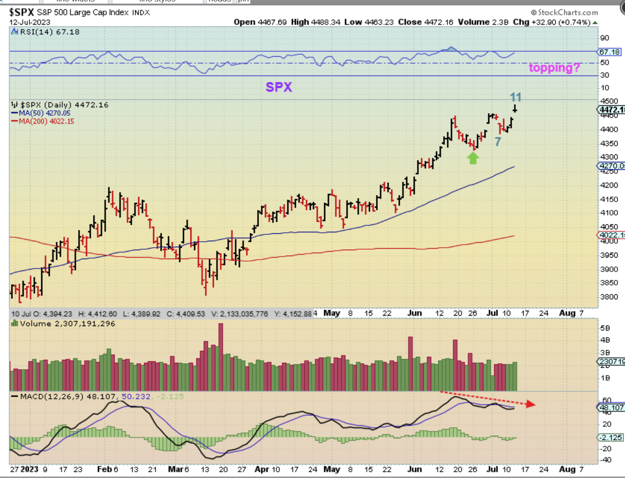 I now view the Precious Metals Sector as having that ICL in place, and that will be discussed later in this report. I started with that thought, because I have also been thinking that we may get a pullback in the general markets. If that is the case, we MIGHT get sector rotation, so we would probably want to think about that too. Are we ready to watch a pullback in the General Markets and a rally in Precious Metals (& maybe small caps like EV & Clean Energy and Oil)? Will money rotate out of one and into the other? I know mine has started to 🙂 , so with that in mind, lets take a look…