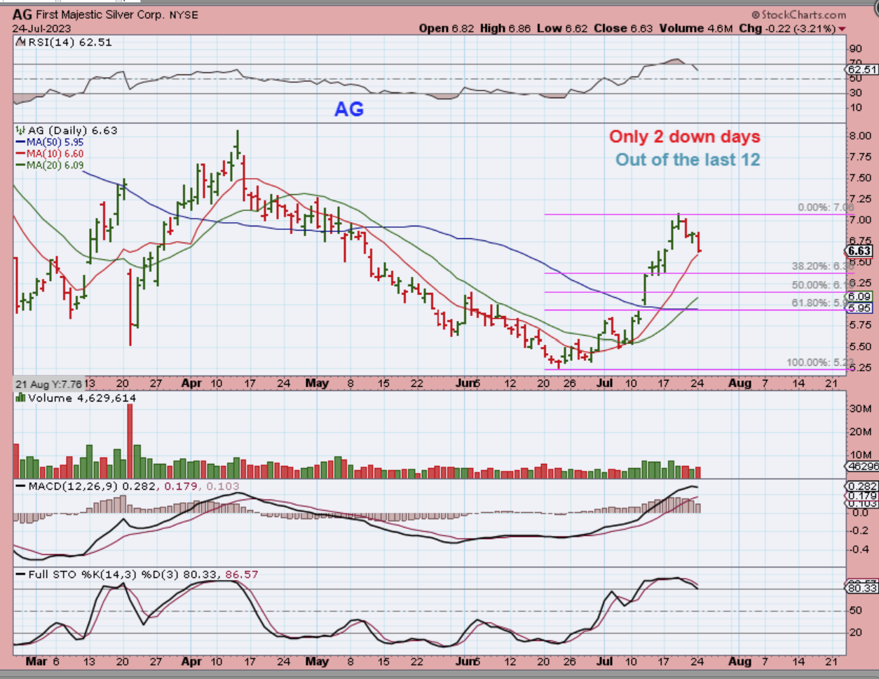 AG has only had 2 real down days. It is at the 10sma, and holding up exceptionally well.