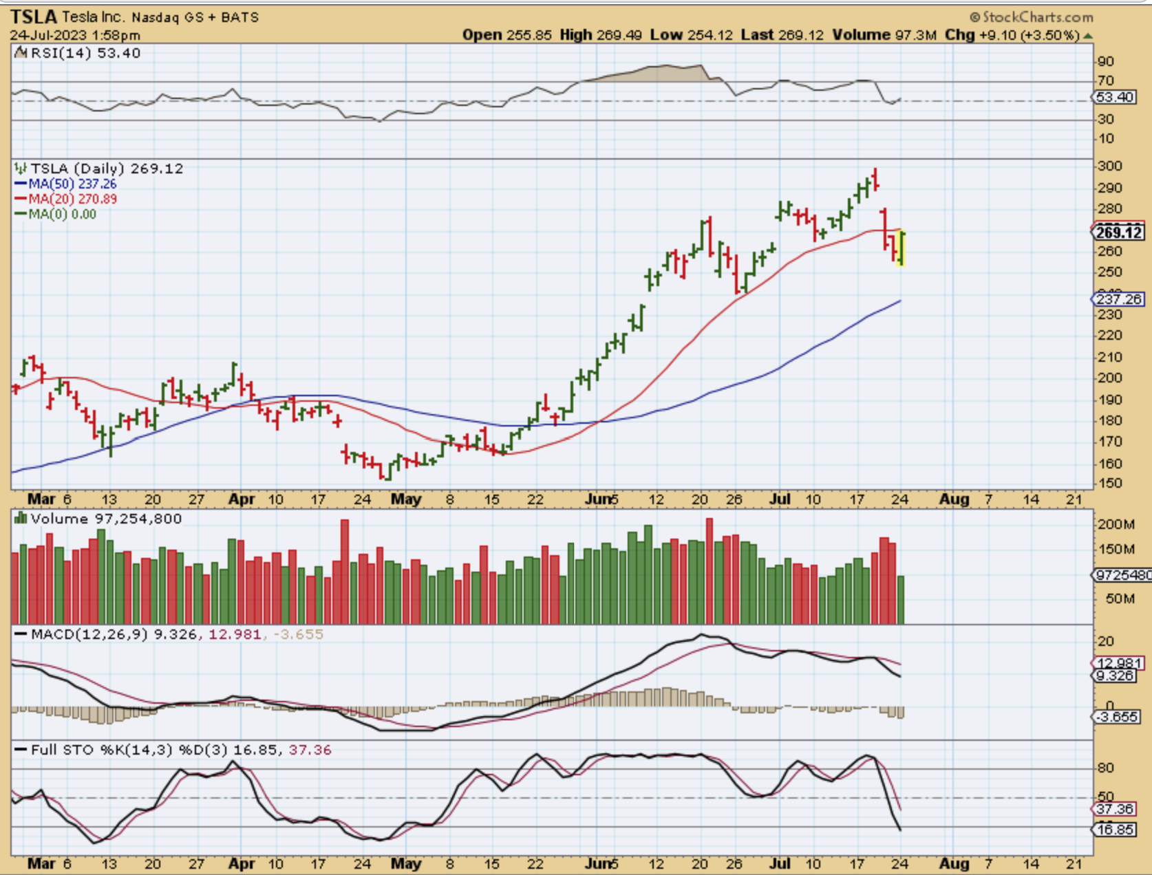 TSLA $150 to $300, so this also ran 100%. Recently I discussed that sharp TSLA drop.  This was yesterdays bounce and I am watching to see if it can recover or not. It Closed in this area too, at $269.03