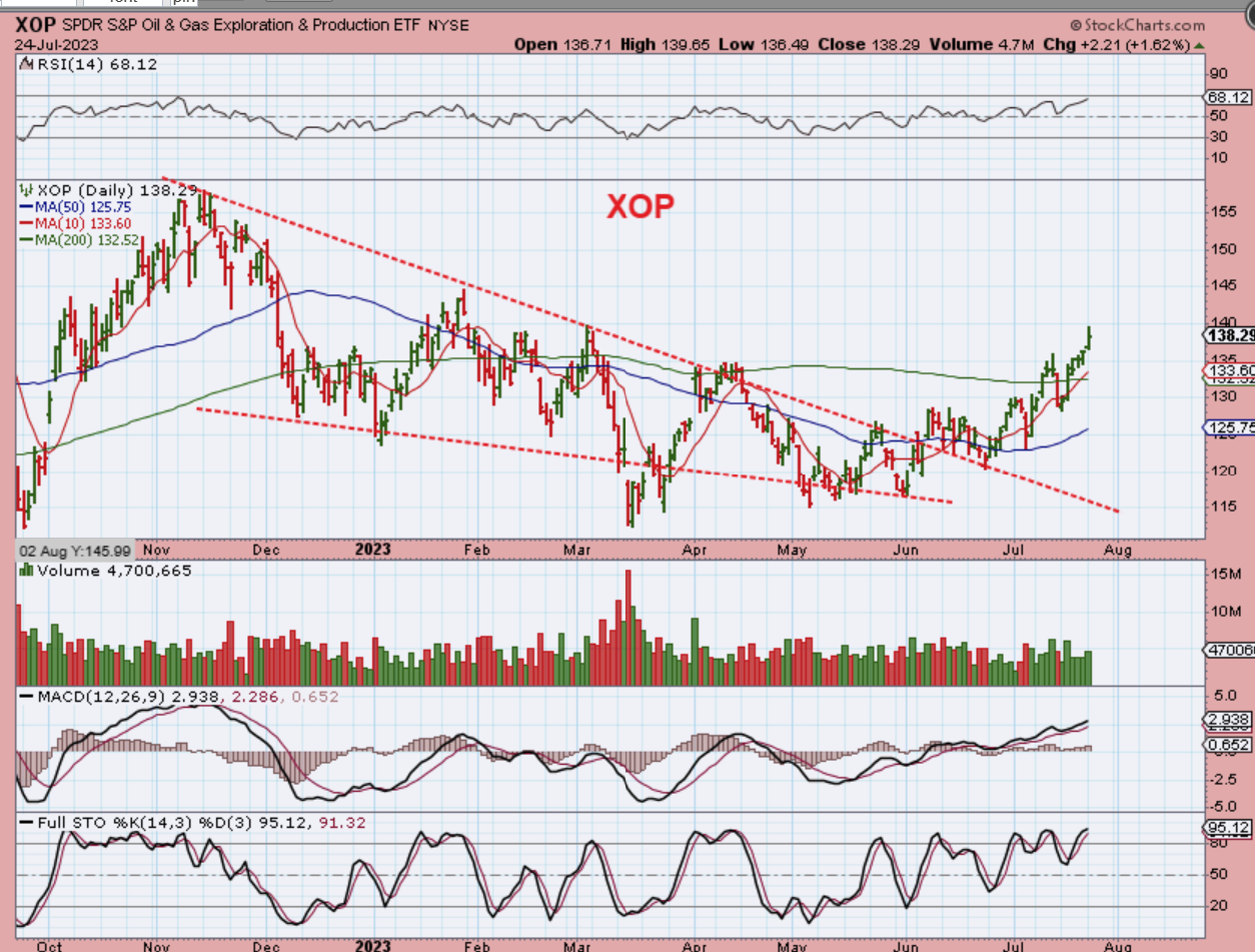 XOP – Oil Stocks have been on a buy for a while now, because they were leading the way and acted bullishly. The XOP broke from a bullish descending wedge, back tested that, then closed above the 50sma & back tested it too. It then rallied through the 200sma. The XOP & Oil stocks also continue to show bullishness with higher lows out of the lows.