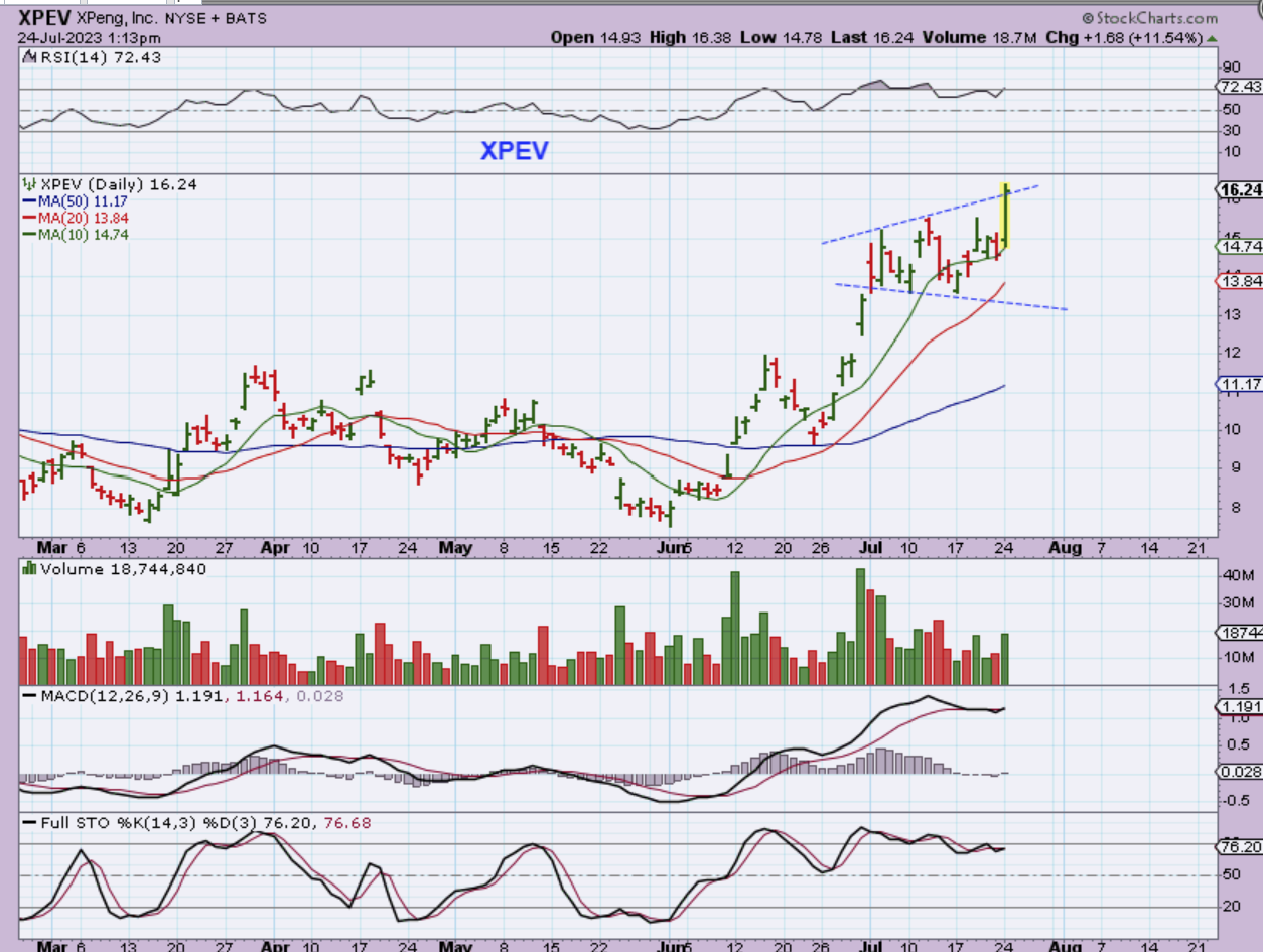 Speaking of choppy, XPEV started to chop sideways and this became a little hard to hold too, but as of this 12% Burst higher yesterday, it is also at new recent highs. This is now a rather quick 100% move off of the June lows. Under $8 to over $16.