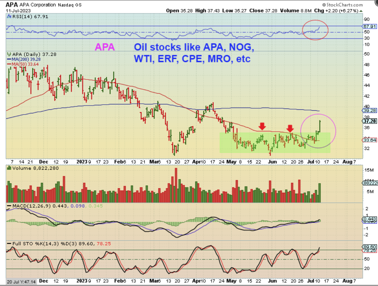 I pointed out one of my favorite Oil stocks (APA) Breaking out last week. And