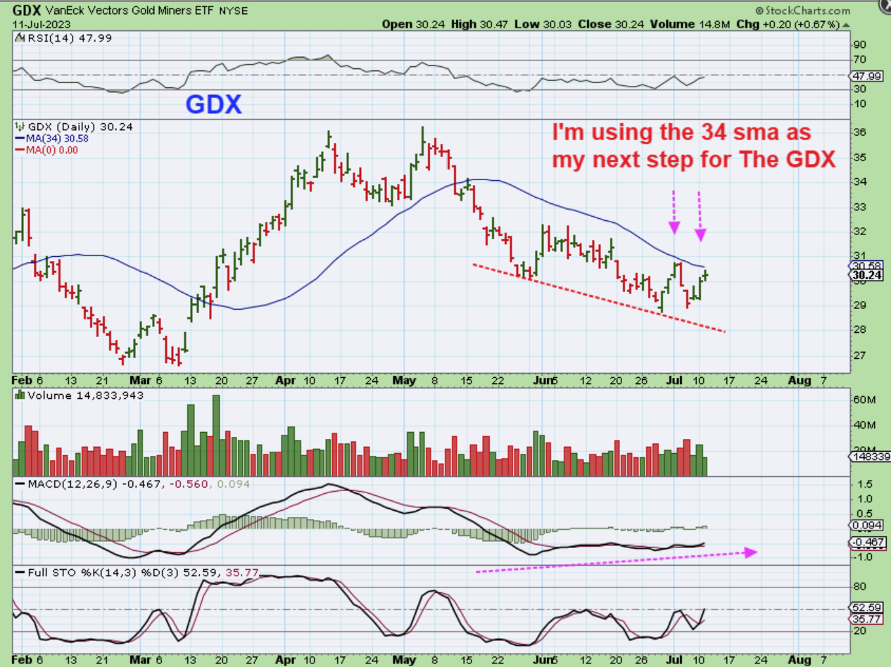 GDX was only up 20 cents and was rejected at the 34 sma. 🙁
