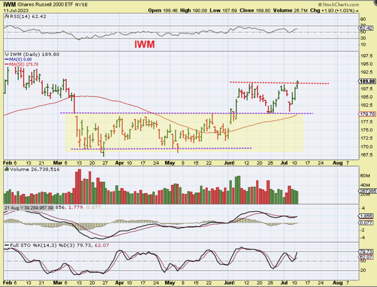 As pointed out recently, The Russell 2000 (IWM) did not rally with the Tech Sector recently, but it is now starting to run higher. You can see here that the Small caps broke to new 4 months highs yesterday, and this looks ready to continue higher (not pull back). Also I have been pointing out that I think the EV and Clean Energy Sector has been waking up lately too. IF the IWM runs higher, the NASDAQ & SPX could just chop sideways and higher too.