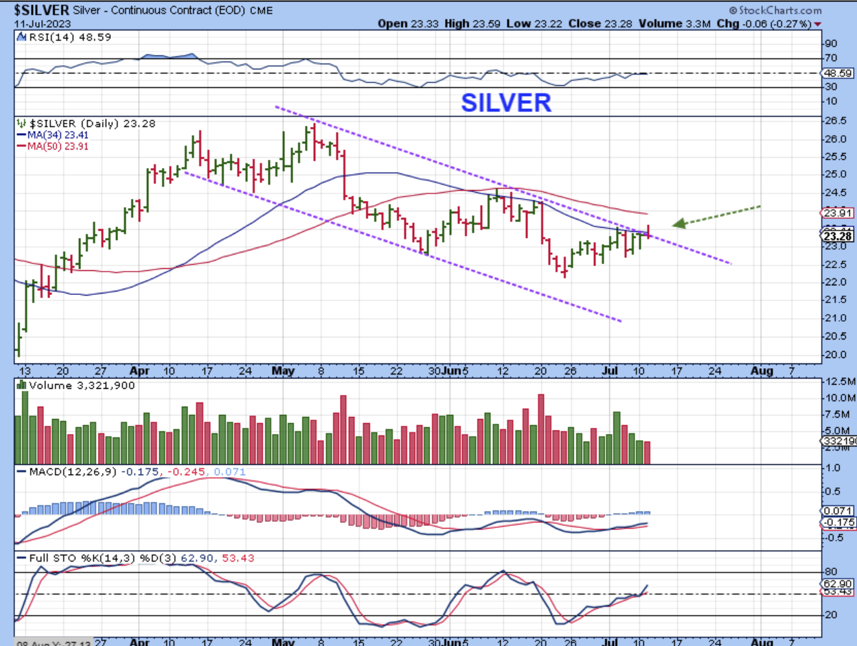 2. Is the MACD crossing upward? Yes, so there is still a bullish look to Gold, but we’ll just have to wait and see if anything can trigger this and push it higher. We have the release of the CPI numbers today.