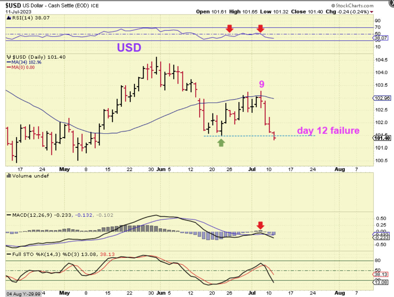 Yesterday the USD daily cycle failed, and that should mean that we now have a couple of weeks of ‘weak’ trading for that USD. It also could have been the catalyst for Gold and The Miners to POP, but sadly, they didn’t pop yesterday. That was fairly disappointing, but we do have the release of the CPI Numbers this morning at 8:30 a.m. ET (Inflation). Maybe that will push Gold higher and the USD lower?