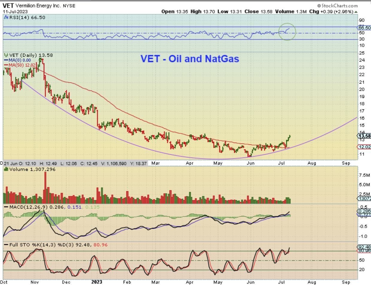 VET – So I started to go through my watch list of Oil Stocks and many are very beaten down after all of that choppiness, but take a look at the potential upside on some of these! With a stock like this, you can start a small position and add on the dips. I may begin to add Oil stocks to the report again, especially after Oil dips to a dcl.