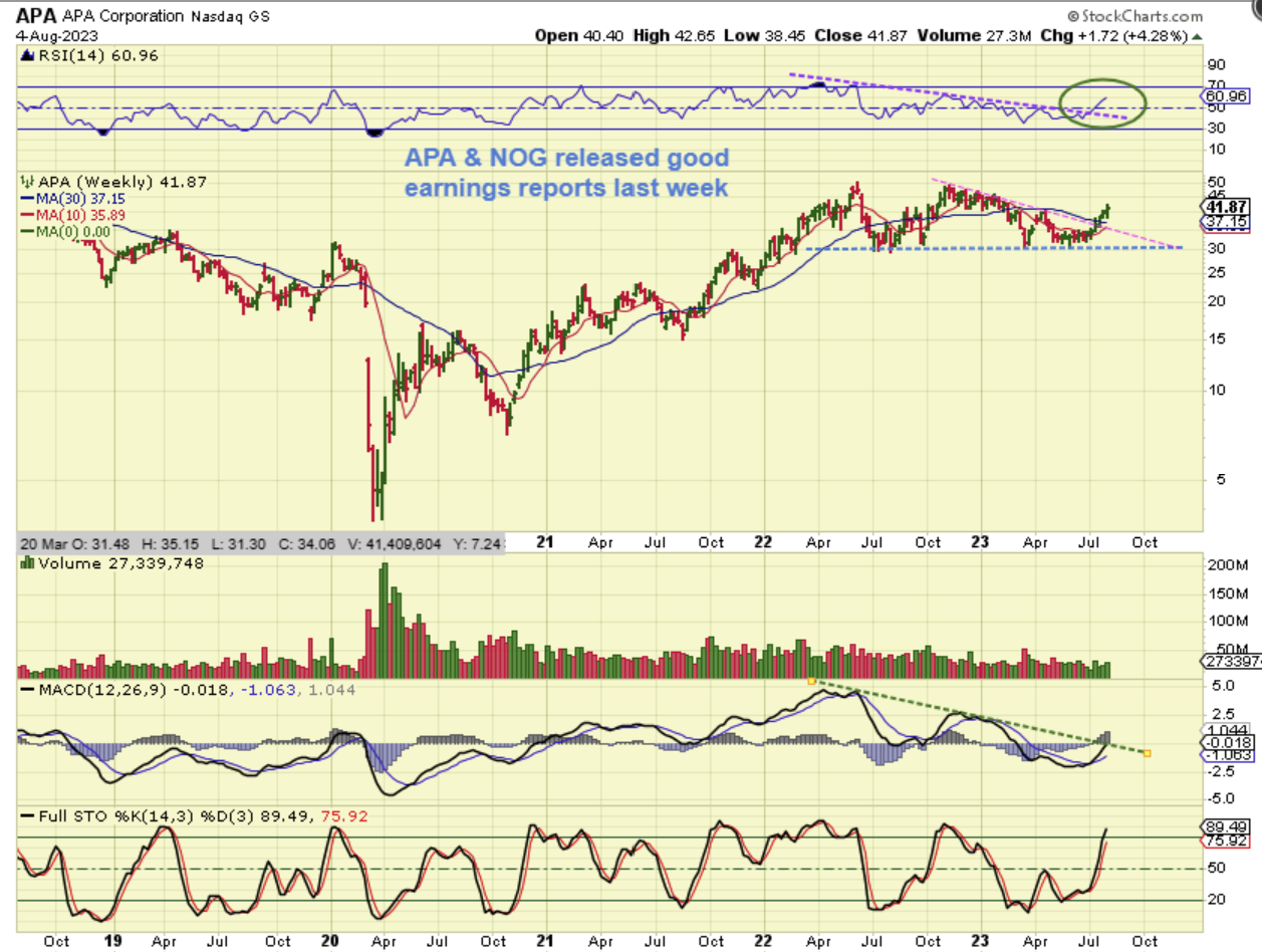 APA, NOG, CPE, MRO, VLO and a few others have been noted as buying opportunities in the reports over the past few weeks. Several also released earnings last week and then price moved even higher, so they are ‘buy & hold’ candidates. With Oil continuing higher, these should continue to run too.
