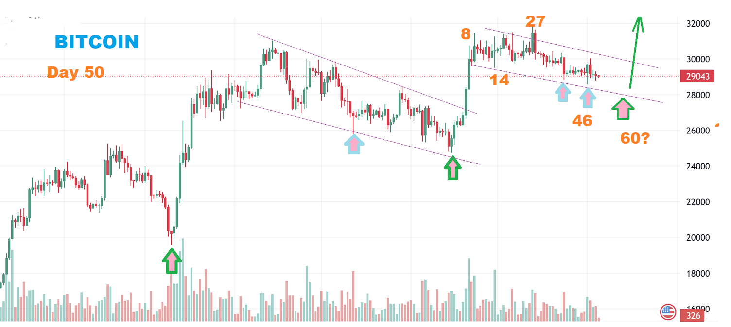 – I have discussed how I use 30 & 60 day periods of time to look for ‘lows’ to come into place for Bitcoin. I have seen a couple of times when this stretches or comes up short but most of the time it is a reliable guide.