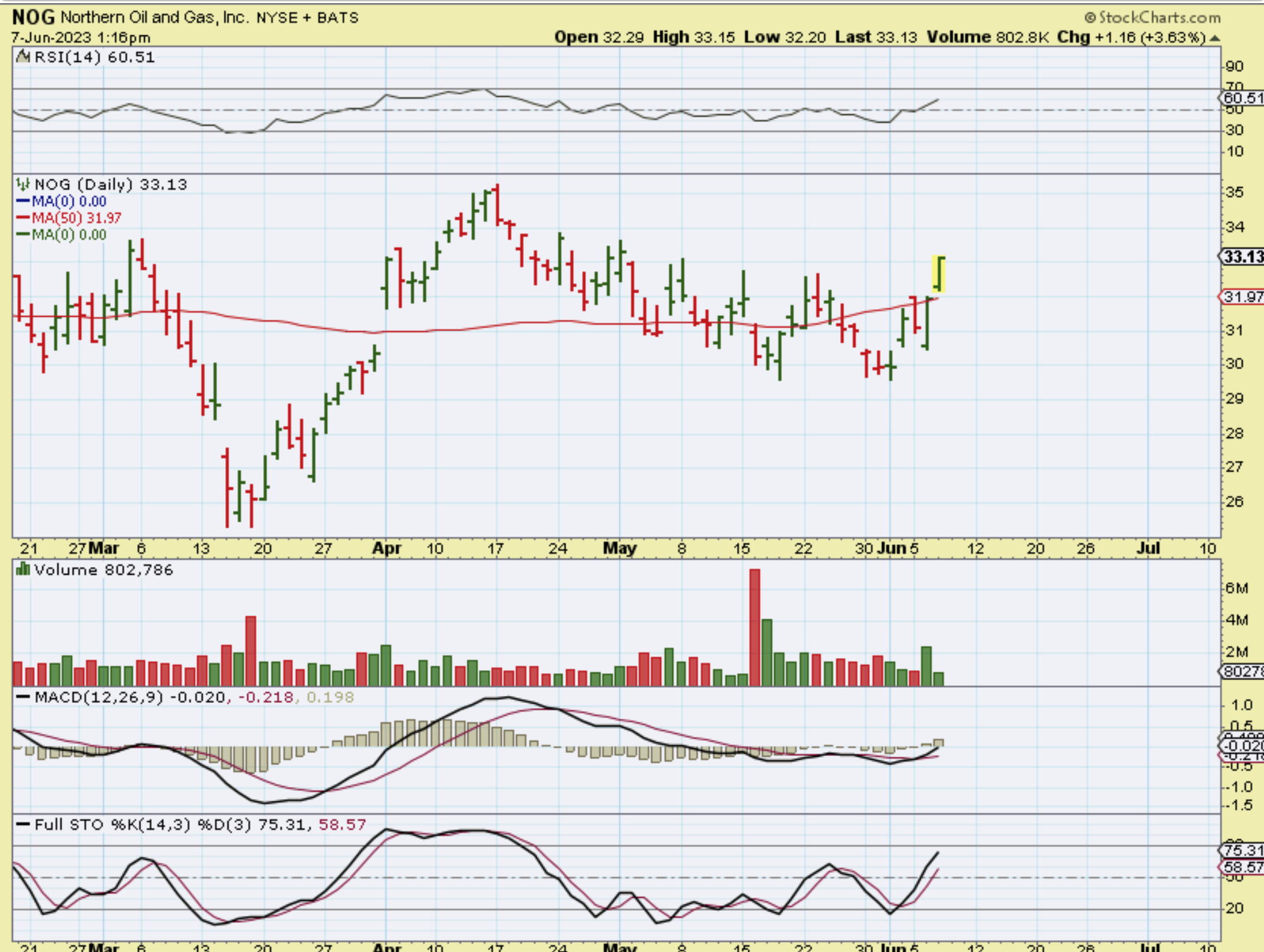 NOG was pointed out as bullish back in JUNE at $33, along with APA, ERF, and others.