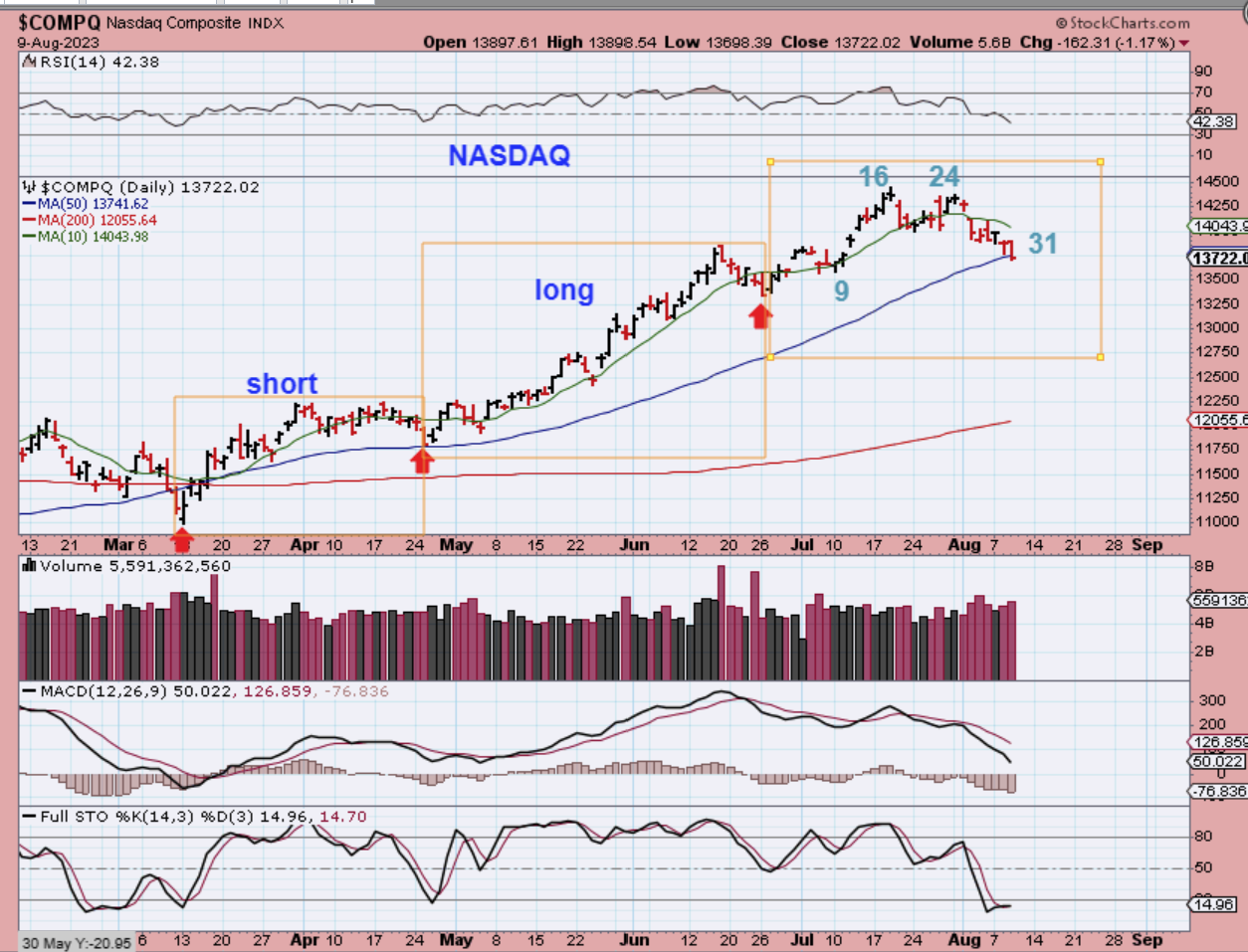 THE NASDAQ dropped and is starting to break the 50sma.