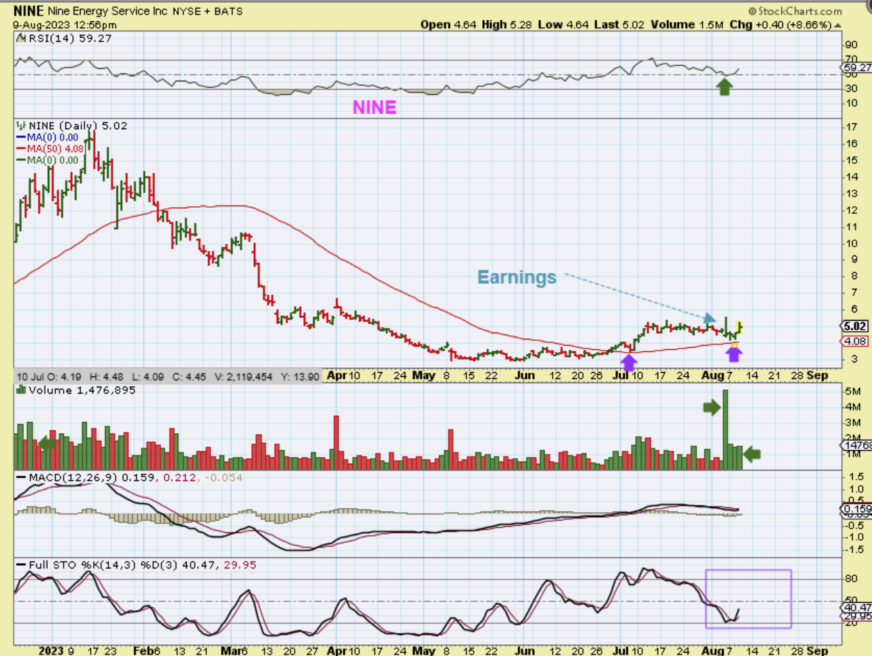 NINE is lagging recently with that base. Notice that we had a breakout of the 50sma in June and it has now back tested that area with the release of earnings last week. I like this set up for a longer term trade.