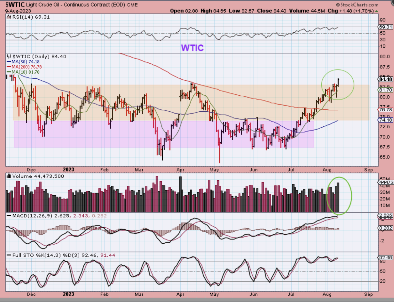 OIL has been in a new bull run out of the lows and it did break to new 2023 highs.  Oil stocks that I had on my watchlist and in the reports like APA, NOG, ERF, etc are doing very well. Oil was a buy at the 50sma and 200sma. It will be a buy at the next dcl too.