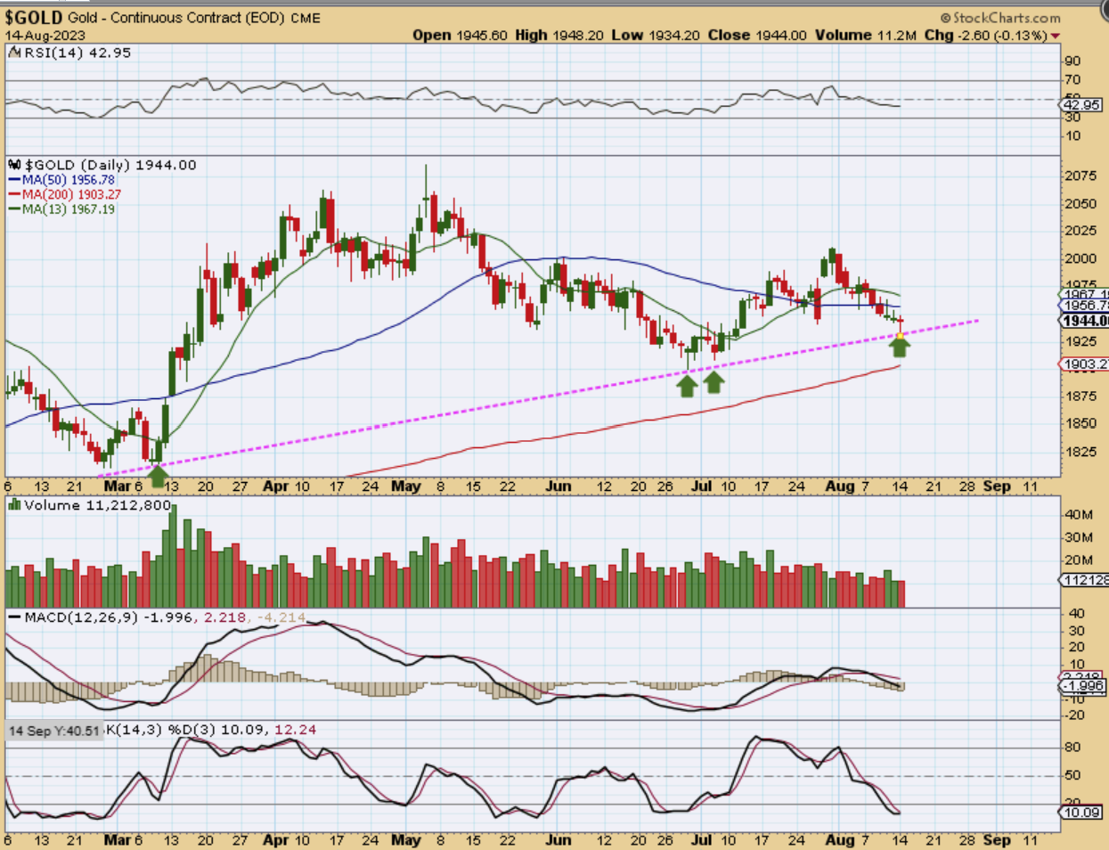 GOLD also seems to be reversing at an uptrend line.