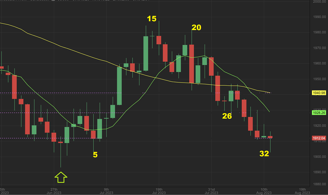 GOLD put in a reversal on day 32 when we look at spot gold. Daily cycle lows often come along on or around …day 32.