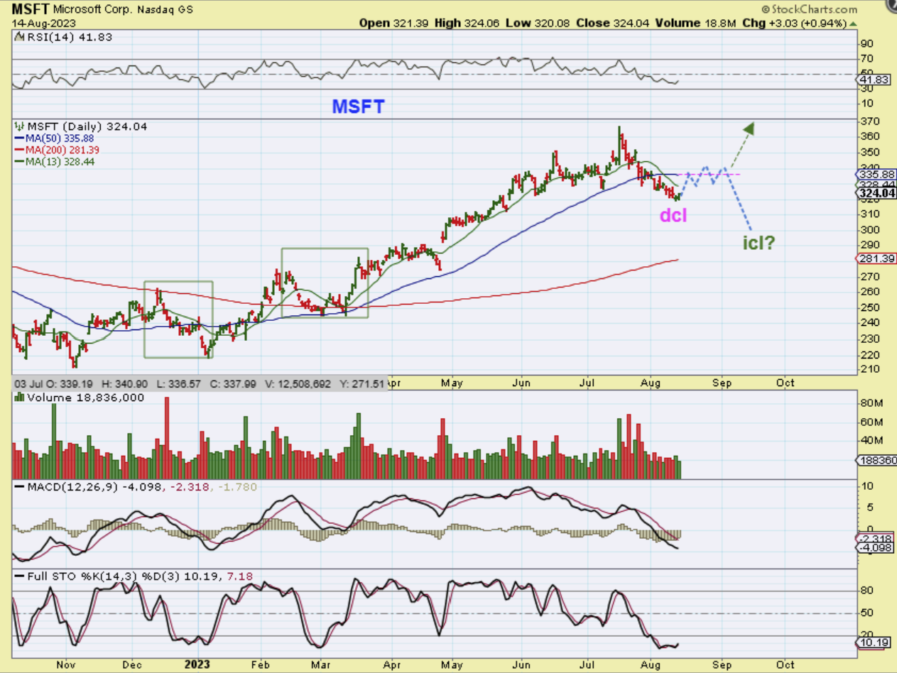 MSFT I looked at MSFT, AAPL, GOOG, NFLX , etc to get an idea of whether all of the former leaders were suddenly looking bullish and it remains a mixture of good and not so good. We could put in a dcl and still get that rolling over into an ICL as seen here with MSFT.