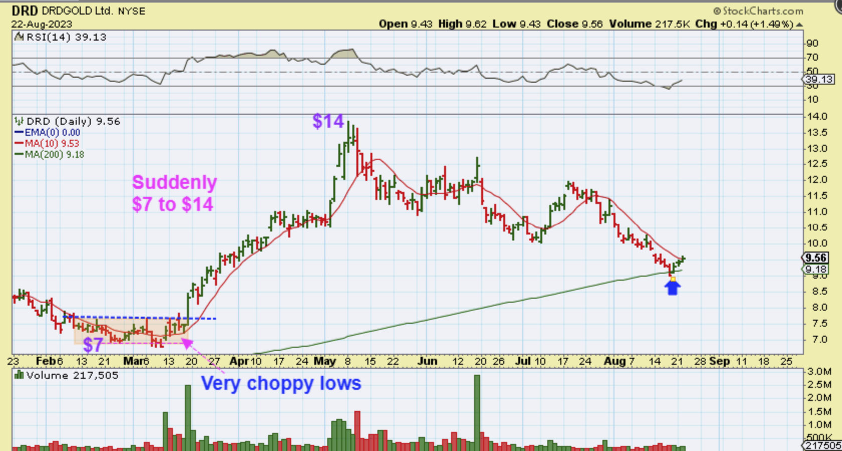 2. At those lows, DRD looked weak and choppy like some miners right now.