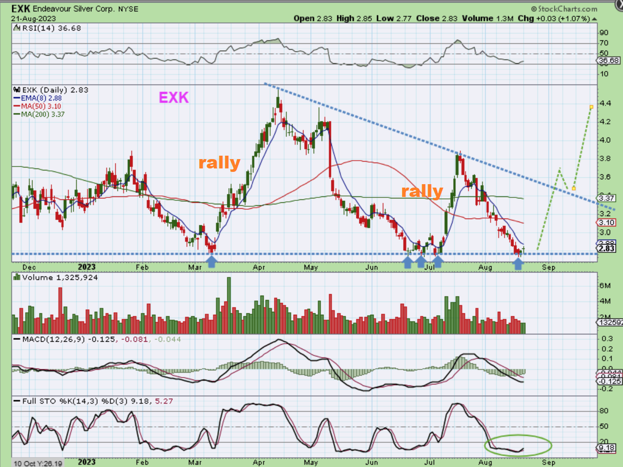 EXK – I just wanted to point out the move that EXK did at the June lows. Didn’t it look weak and pathetic as it bounced around  for 2 weeks at the lows? Yes it did, but suddenly it surged 30% and that was with several straight days of gains in a row, so we all know how these miners can move once they bottom. This is just a friendly reminder.