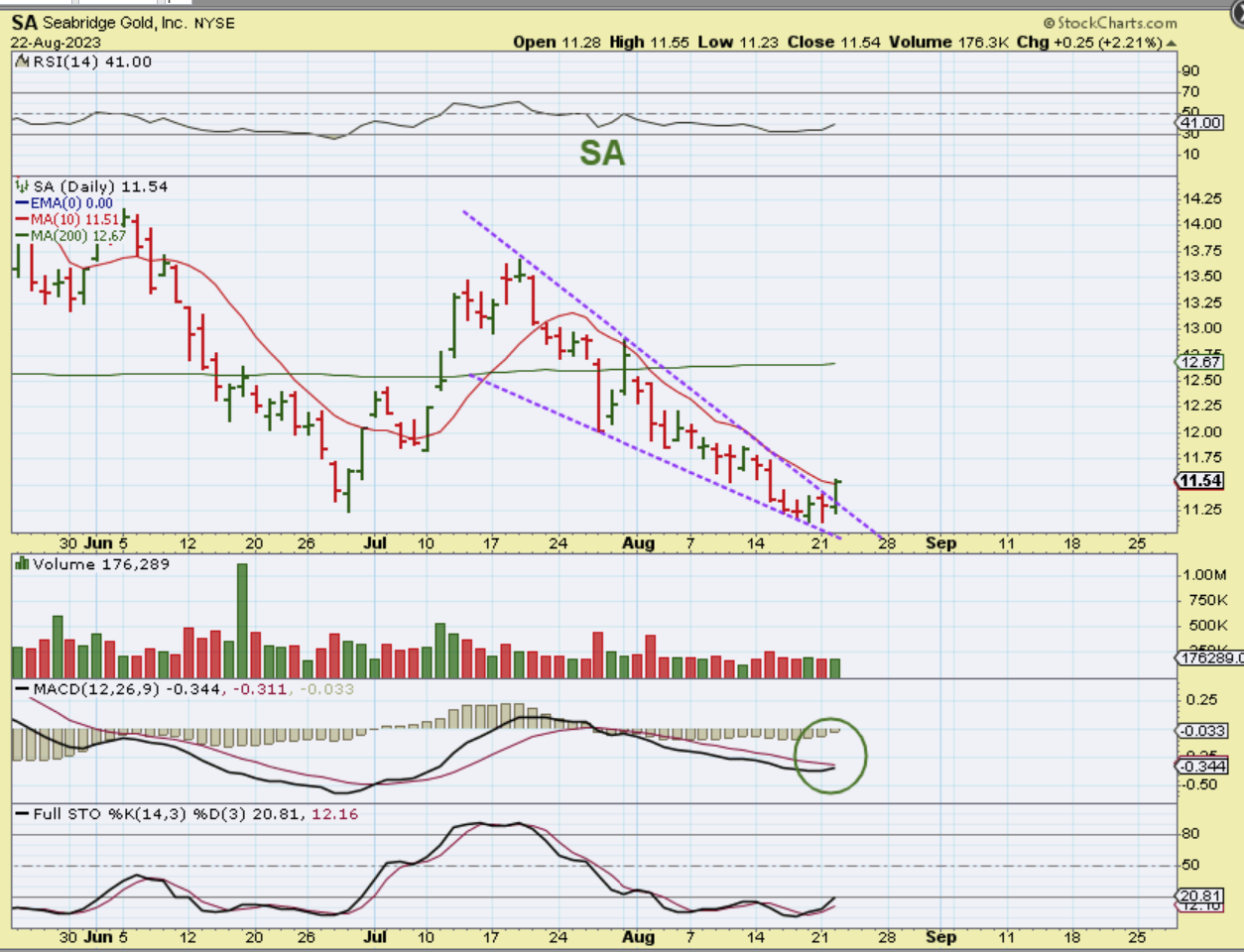 SA only closed up a total of 2.21%, and that isn’t really anything to shout for joy over, but it also broke a downtrend of a bullish wedge and closed above the 10sma. The good news is that many Miners remain right at their lows.