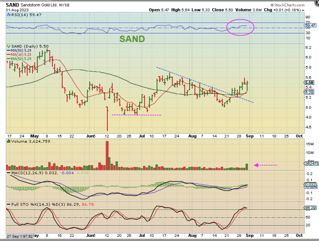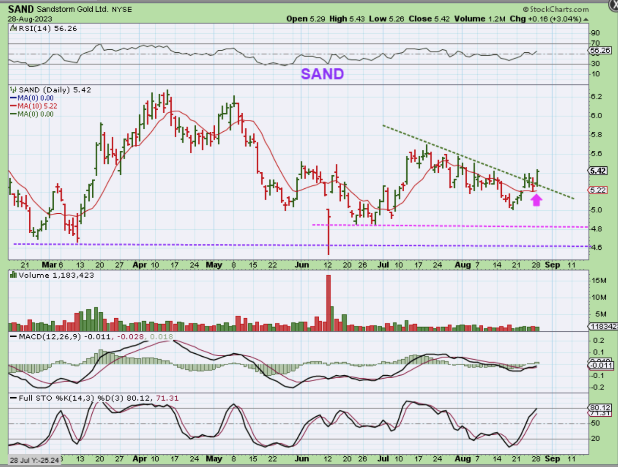 I just mentioned that SAND was breaking out as a buy with a stop at the reversal low on Aug 28.  Is it holding up?