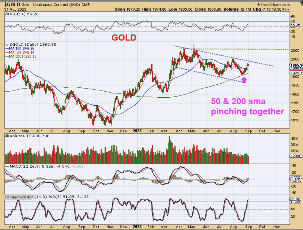 GOLD is also showing a pinch of the 50 & 200sma in the bigger picture. This is a bullish set up and we are expecting Gold to break that downtrend, run up to all-time highs, and then break out.