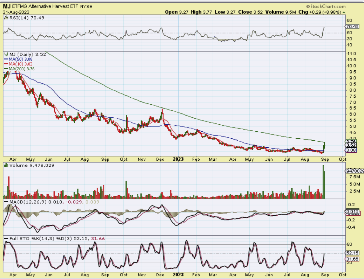 The MJ ETF popped another 9% and some of the MJ Stocks were up another 10-30%.  We always see BIG MOVES in this sector and Crypto. So the MJ ETF is at resistance and it tagged that 200sma and dipped lower. We’ll see if this is the end of the road again, or can this finally break out and move out of this massive sell off? Huge money will be made in this sector if we finally break out and begin a stairstep higher, so I’ll be watching this sector closely.