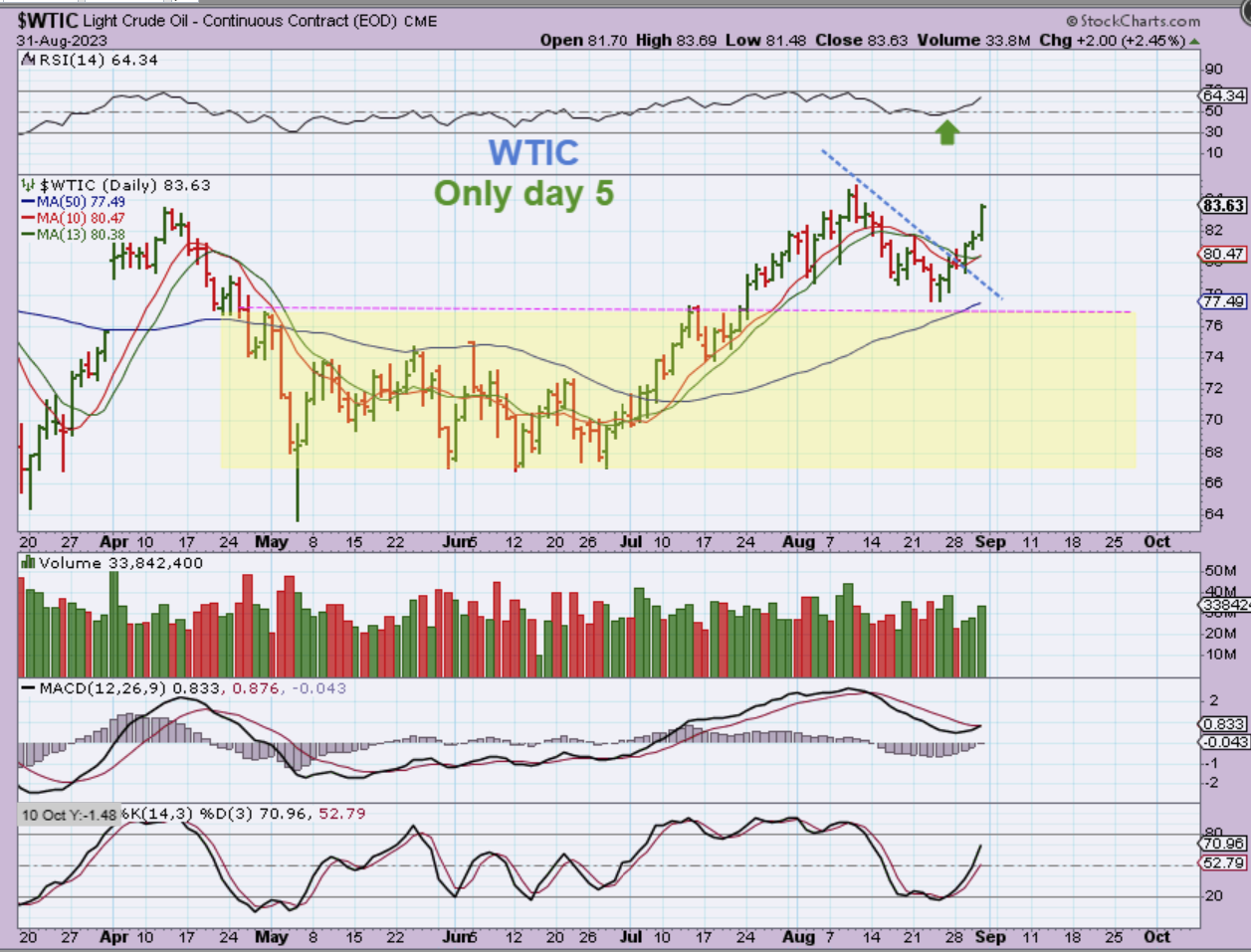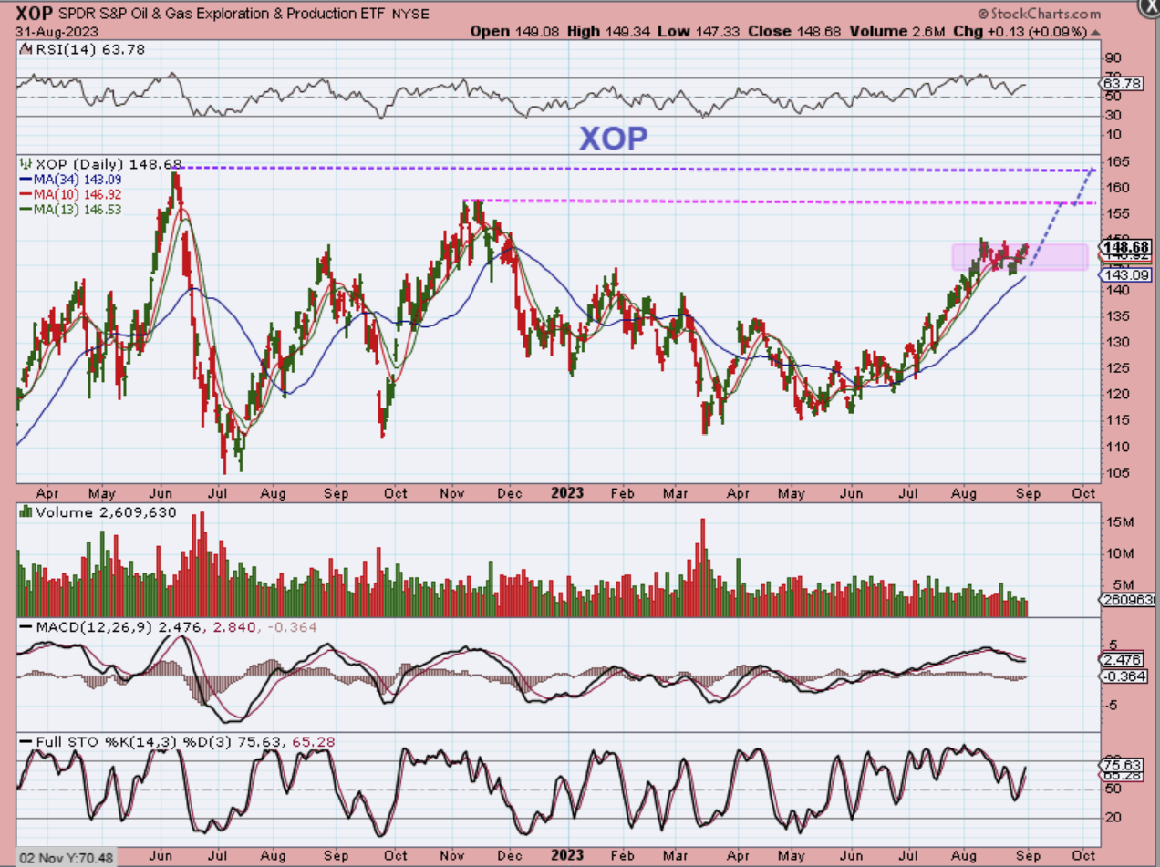 WTIC – Oil continues higher as expected. Trades here can be made with UCO, USO or any of the Oil Stocks. Traders also use GUSH with the XOP as a guide. Let’s look at The XOP…