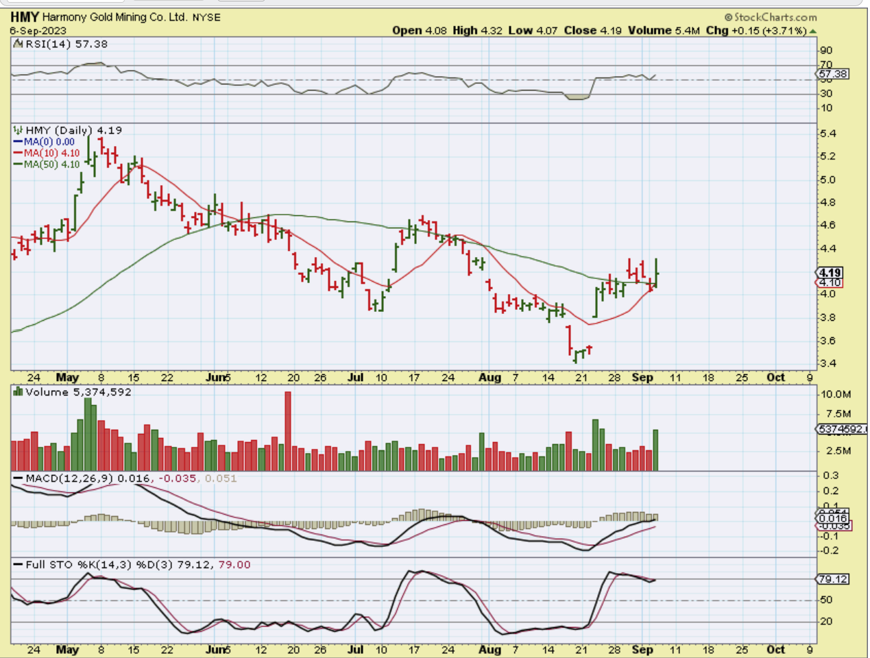 Some Miners like HMY still look ok, others like EXK just don’t, so deciding whether you would like to buy the dip or sell until the choppiness stops, etc is a personal decision. I was very confident when the lows were first in place that we would see some upside, but GDX failing at the 50sma when Gold and Silver were flying higher has made things a bit less bullish short term. The set ups seem more neutral. We need more time to see how this will play out.  I will say this however…