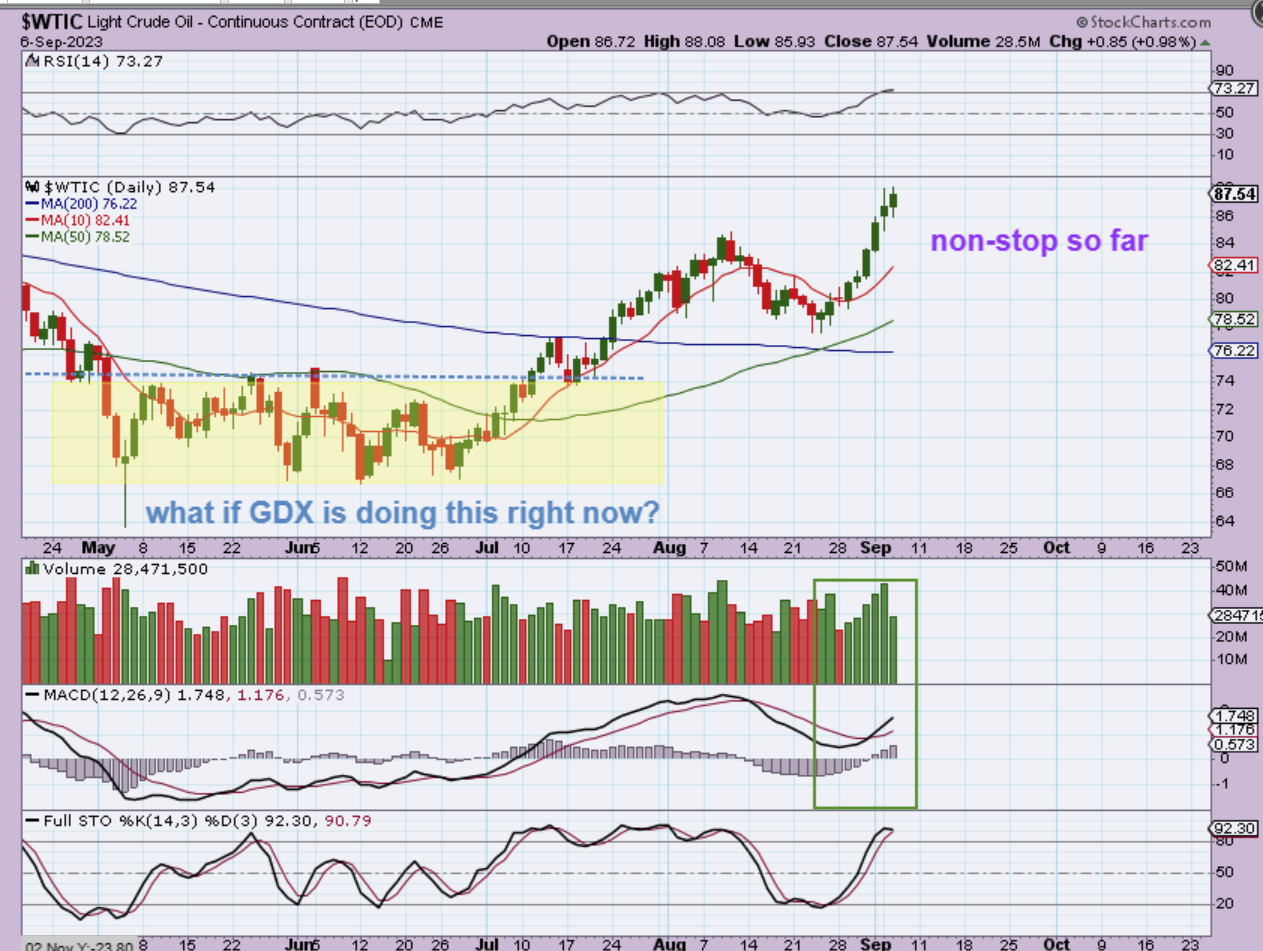 I wrote on this chart:  What if this is what Miners are doing right now at the lows? Gold and Silver still look good, but Miners seem to be choppy and frustrating like Oil was. You can see that once it got running, it was easy to enter later too.
