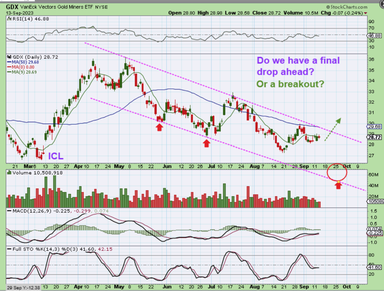 Applying Golds set up here and knowing that Gold could go either way, we know tht GDX could go either way too.